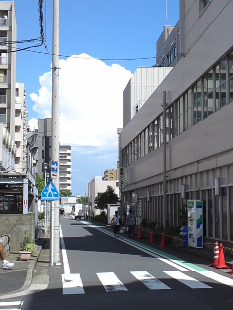 ▼(2012年9月3日:横浜市根岸駅周辺のビルの谷間から見えた入道雲)