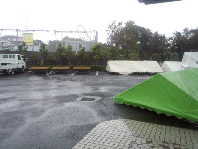 前日の準備では、大雨を通り越して嵐のような天候でした。