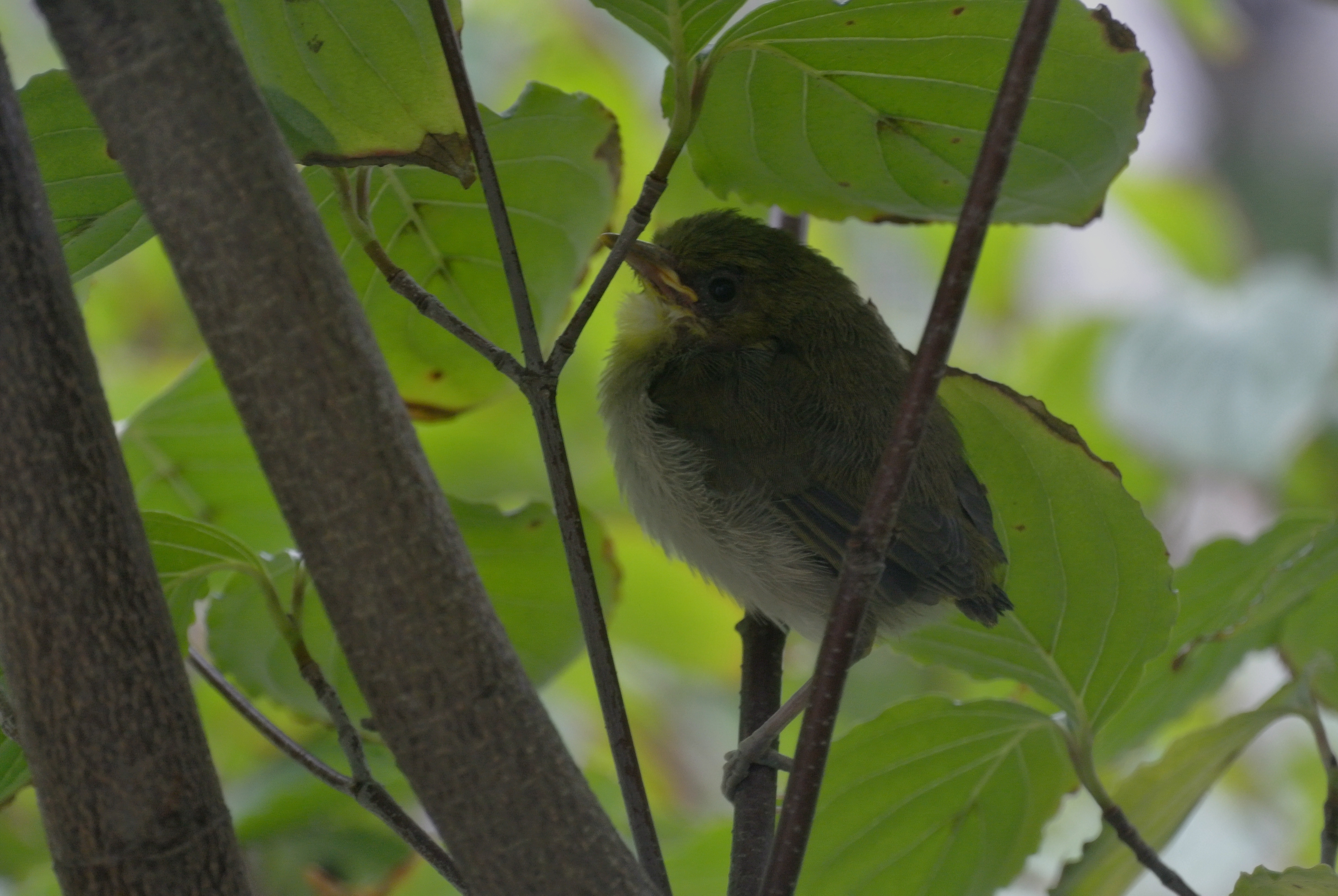昨年7月の初旬、我が家の狭い庭の木に、メジロ(▲写真・上)が巣を作り(▼写真・下)、