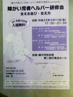 「障がい児者ヘルパー研修会」開催のお知らせ