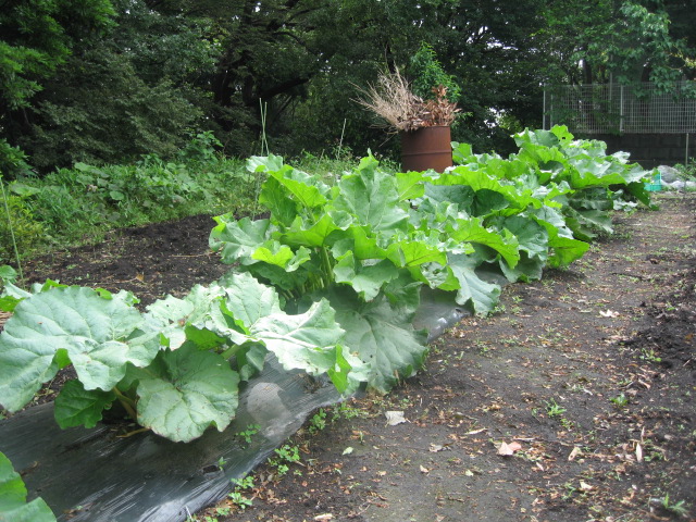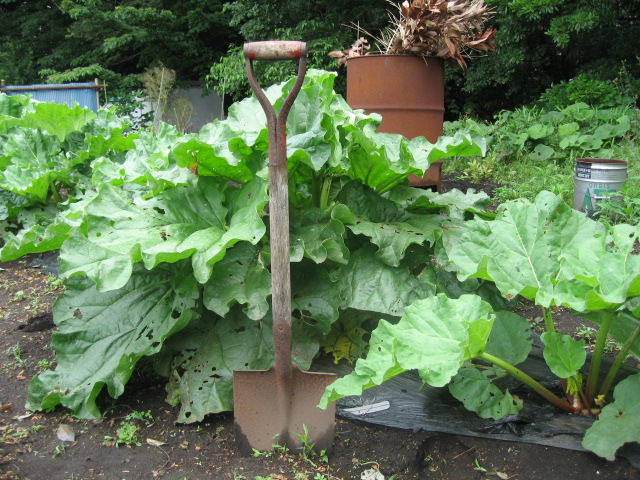 湘南ゆうき村では昨年より理事長と畑の指導をいただいている「市民農園を拡げる会」の鈴木氏から苗を頂戴し、ルバーブの栽培を始めました。しかし、昨年の猛暑で苗はすっかり弱ってしまい、その後、育ってきた苗も冬には枯れたようになってしまいました。あきらめかけていると4月頃から緑の葉が出始め、5月にはぐんぐん成長し、現在は写真のようになりました。これから収穫しジャムを作りますが、試食が楽しみです。どんな味がするのでしょう?