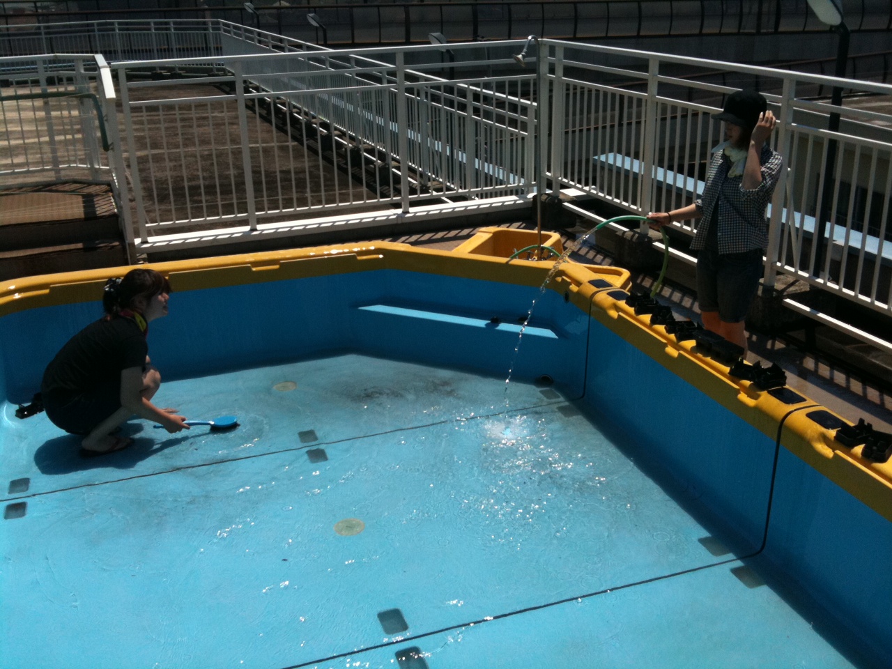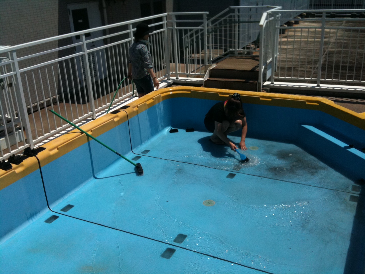 今日は、児童デイサービスで使用するプールを掃除しました!
