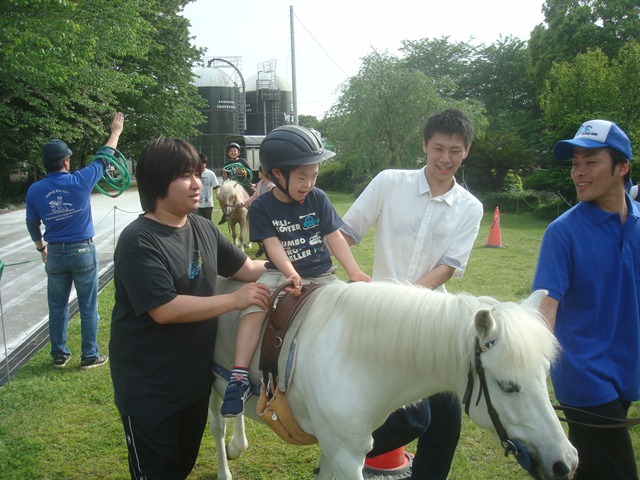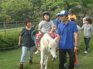 2年前より、サービスセンターぱる児童デイサービスでは、日本大学動物資源科学科小林教授とともにポニーによる障害者体験乗馬会を行なっております。