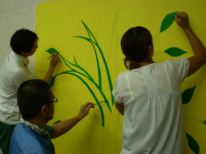 008.JPGのサムネール画像ただ今、壁画作成中です。みらい社の画伯