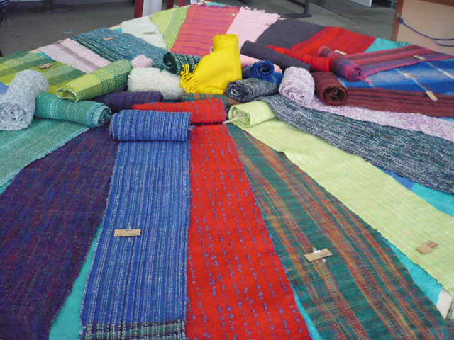 織られた作品は、マフラーやショール、タピストリーにしたり