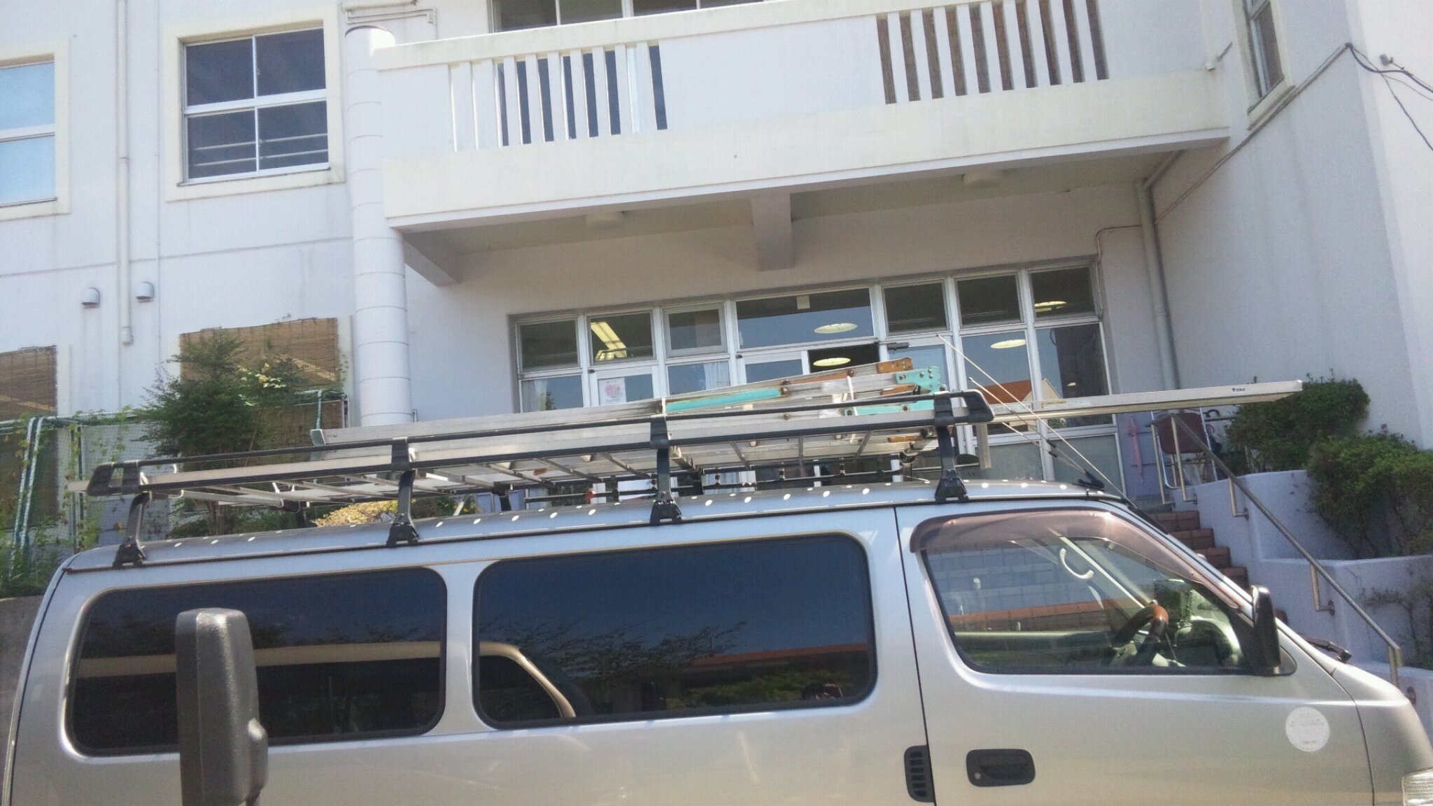 利用者のみなさんは、作業中、ゆうき村からお借りしたマイクロバスで、ロングドライブ。