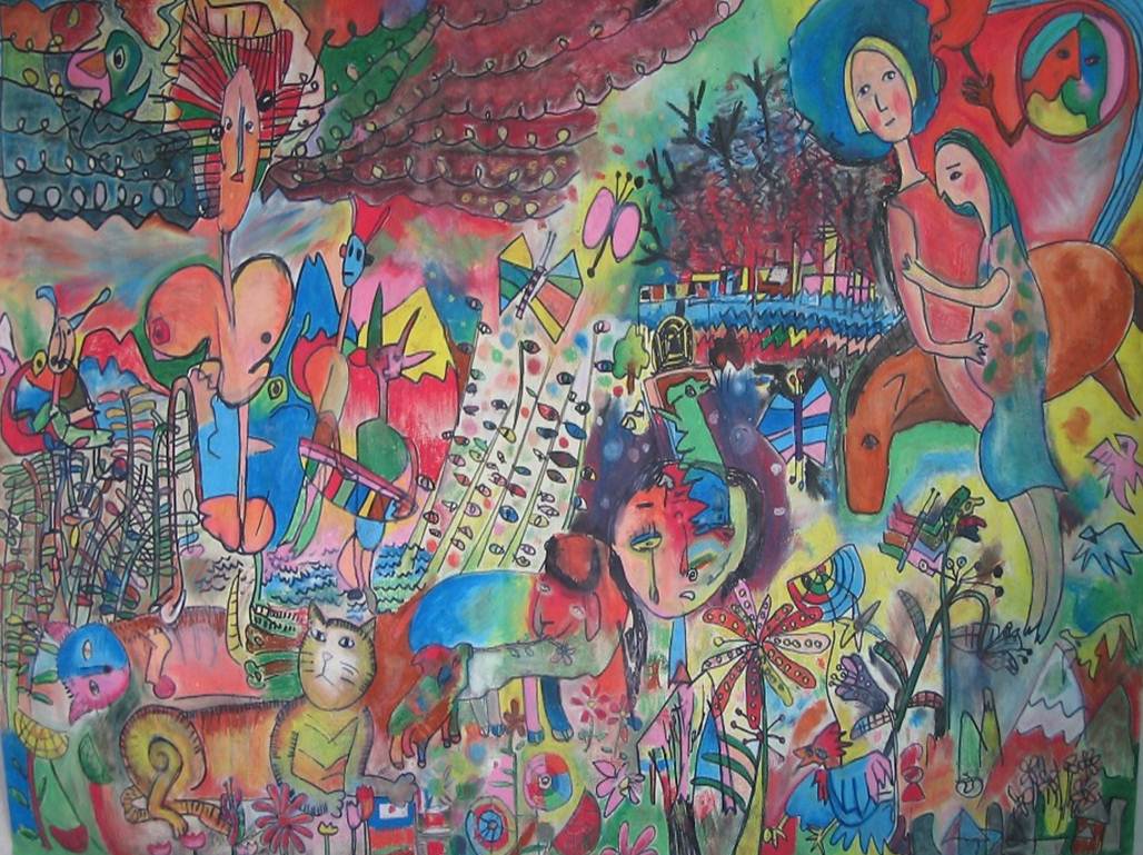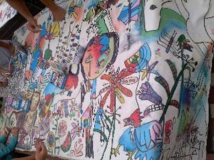 アートの力で日本を元気に!!「復興」をテーマによし介メンバーらが下絵を提供し、来場していただいた一般市民の皆さんに色を塗ってもらうというセッションを行いました。