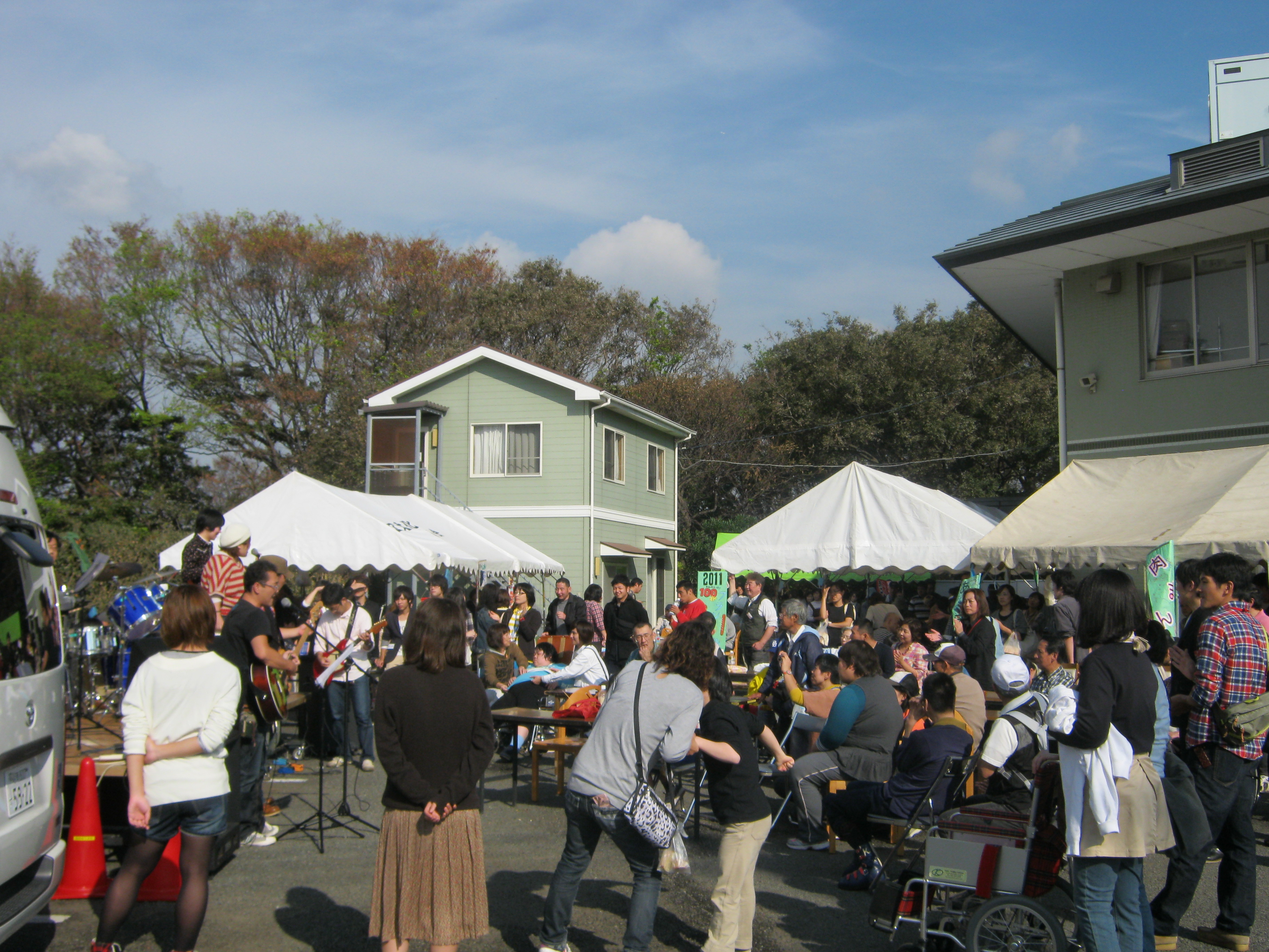 さて、「西俣野楽団」というグループは、今回の収穫祭に向けて、ドラムやキーボード・ヴォーカル等が出来る優れた才能を持つゆうき村スタッフと法人内の有志が立ち上がり、約2ヶ月という短い期間で練習を積み重ね、当日初デビューを成し遂げることが出来ました。「西俣野楽団」のメンバーの皆さん、来年もよ・ろ・し・くお願いします。