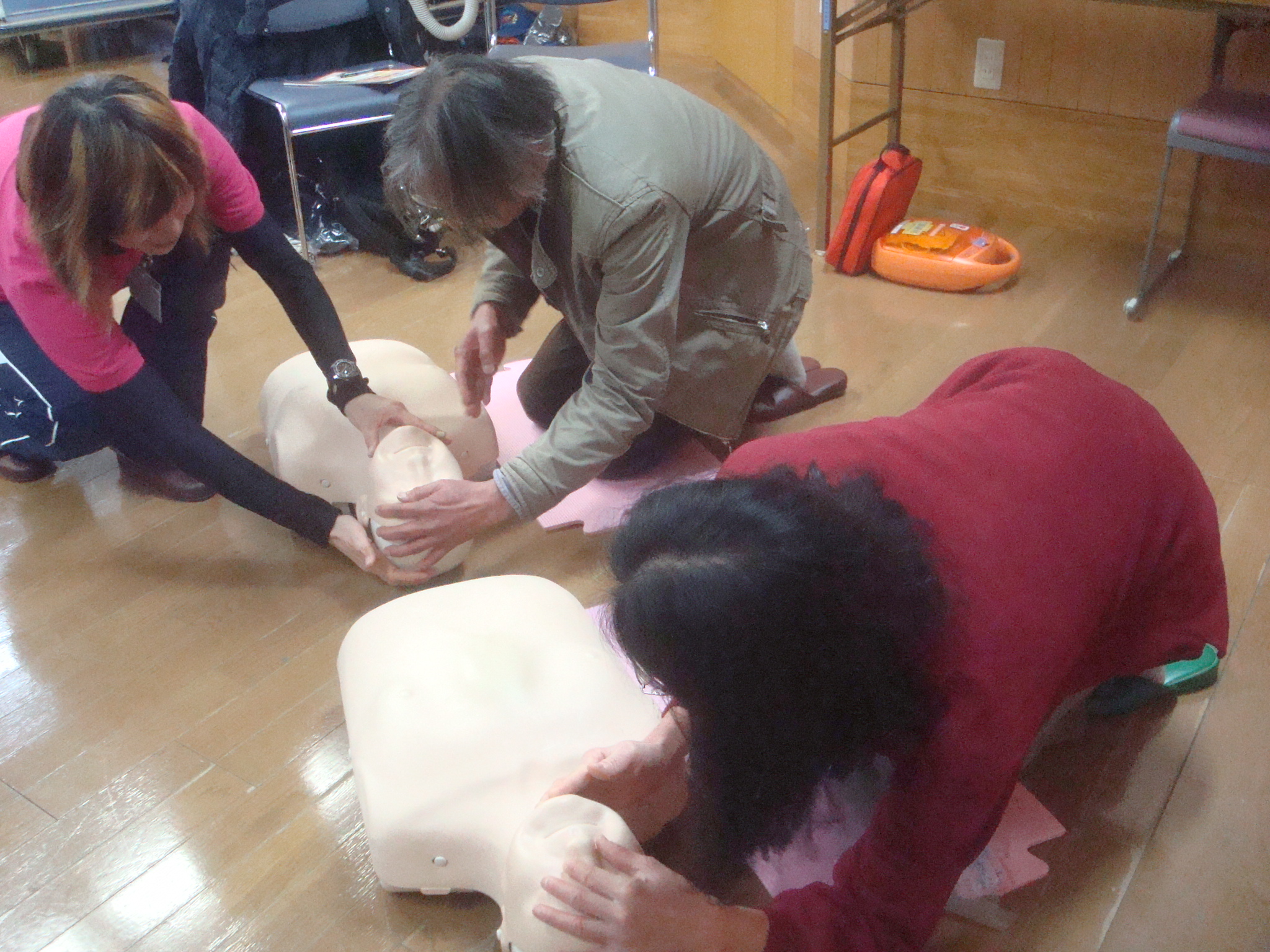 講習会全体としては、参加者全員が、しっかりと声を出し、手順を確認ができました。前回の講習会とのときとはまた異なる手順や重要とするポイントに変化がありました。講師の方からは、胸骨圧迫をしっかり行ってほしいことをくりかえり教えていただきました。