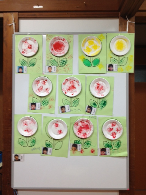 手順は写真のとおり、みんなの作品を並べると素敵なお花畑に~~❀❀❀