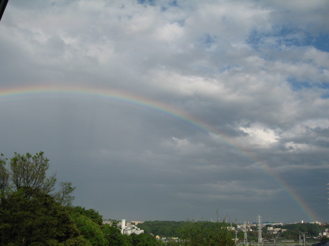先日の、雨上がりの夕方に、大きな大きな虹が出ていました。