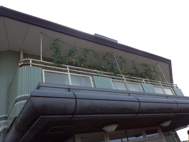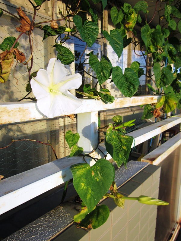 ゆうき村の二階のベランダに、ご家族の方から頂いた夕顔を植えていました。