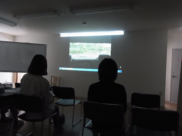 映像実習:ドライブレコーダーで実際の事故映像を見て、車外で死角になりやすいものの再確認を行ないました。
