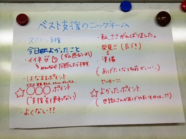 ベスト支援のニックネームをつくる話し合いをしました。沢山の意見が飛び交う良い時間となりました。でた意見をご紹介します☆彡