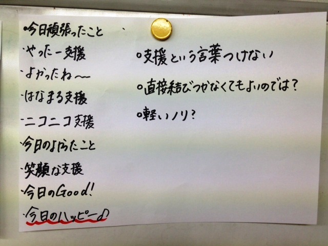 日々の支援を振り返るに「ハッピー」に利用者の方、支援者がなったことを「今日」をキーワードに振り返ることがポイント♫