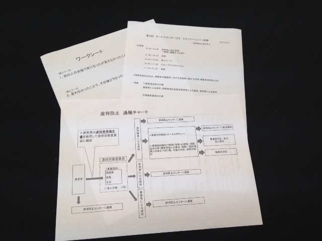 その後、法人の取り組みとして「虐待発見報告書」や「通報チャート」について学びました。