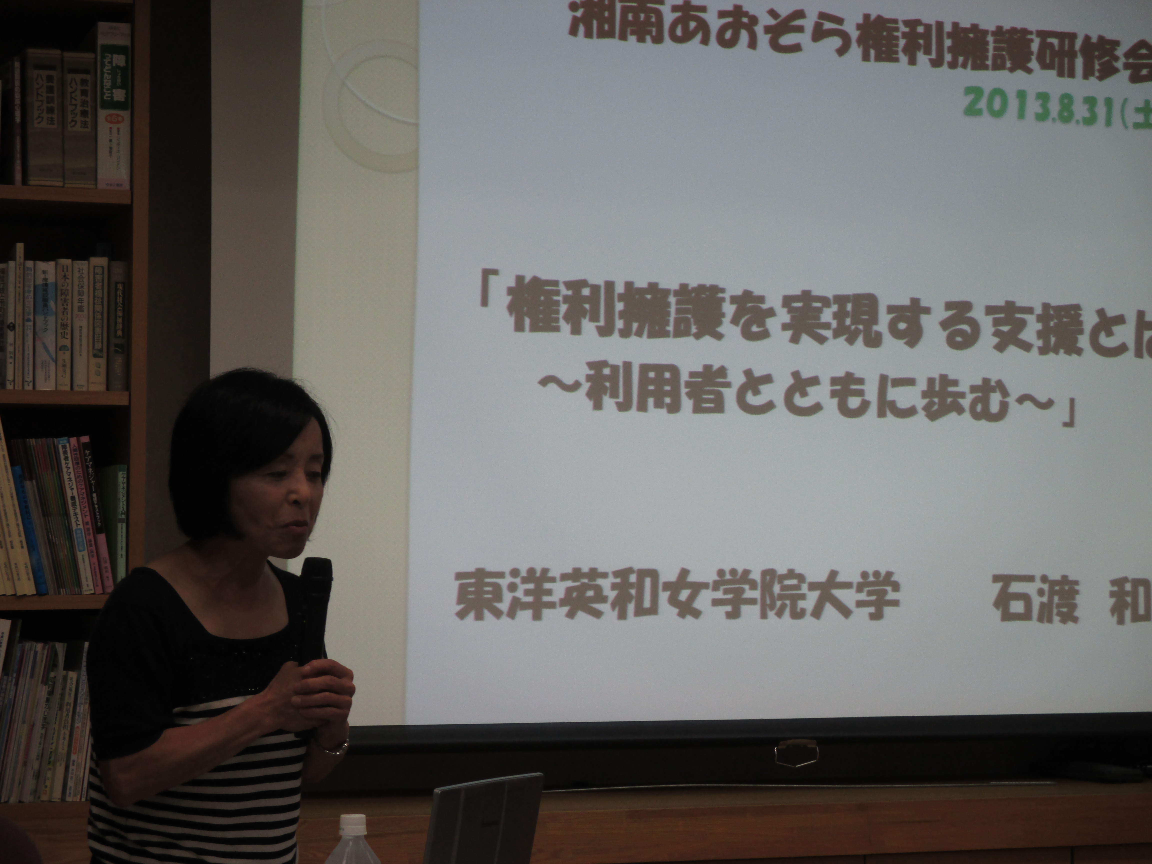 午後は、講師に東洋英和女学院 人間科学部人間福祉学科 教授 石渡和実氏を講師に招き、「権利擁護を実現する支援とは~利用者とともに歩む~」というテーマで講義を聴き石渡先生とデスカッションをしています。