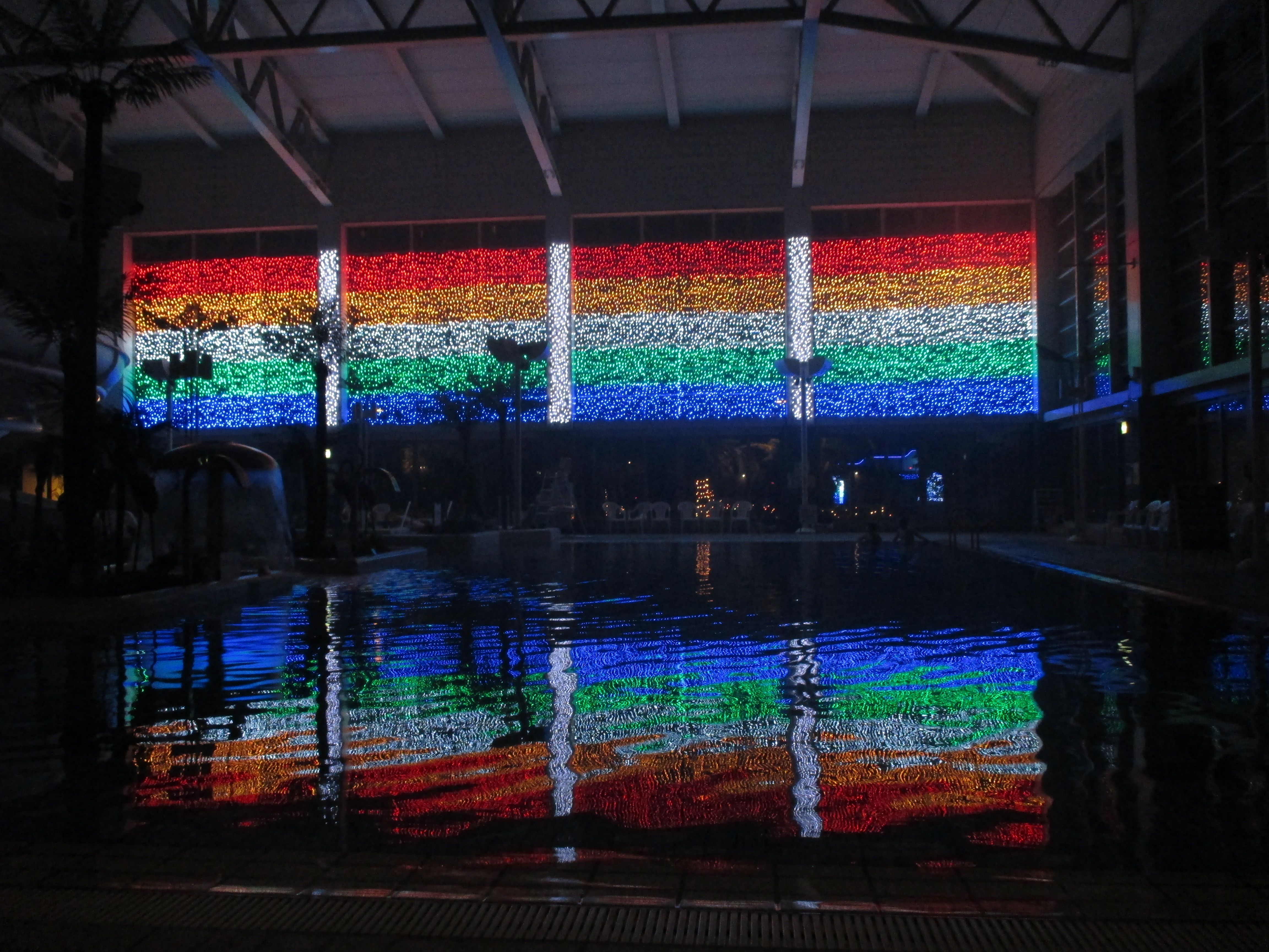 さらに夜になるとプールがライトアップされました。綺麗ですね!