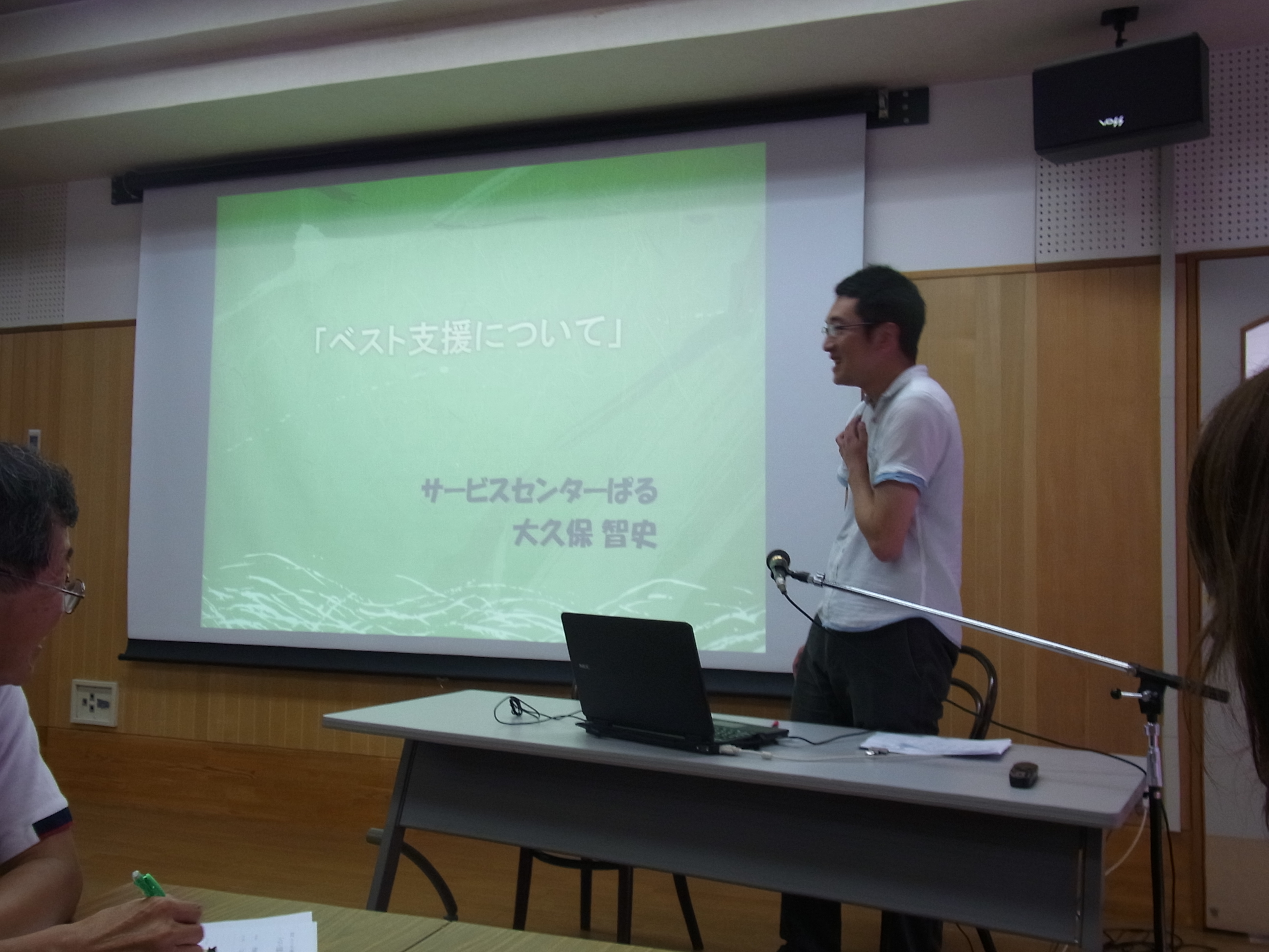 2013年9月13日、湘南あおぞらオープンスペースをかりて、ぱるスタッフ、登録ヘルパー、ホーム支援員・世話人の総勢32名が集まり、スタッフヘルパー研修を開催しました。今回は、法人全体で取り組んでいる「ベスト支援」をテーマに、大久保職員がぱるでの取り組みを紹介。その後、6グループに分かれて、ベスト支援の事例から良かった点について意見交換をしました。