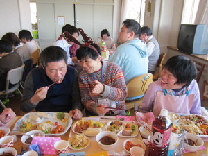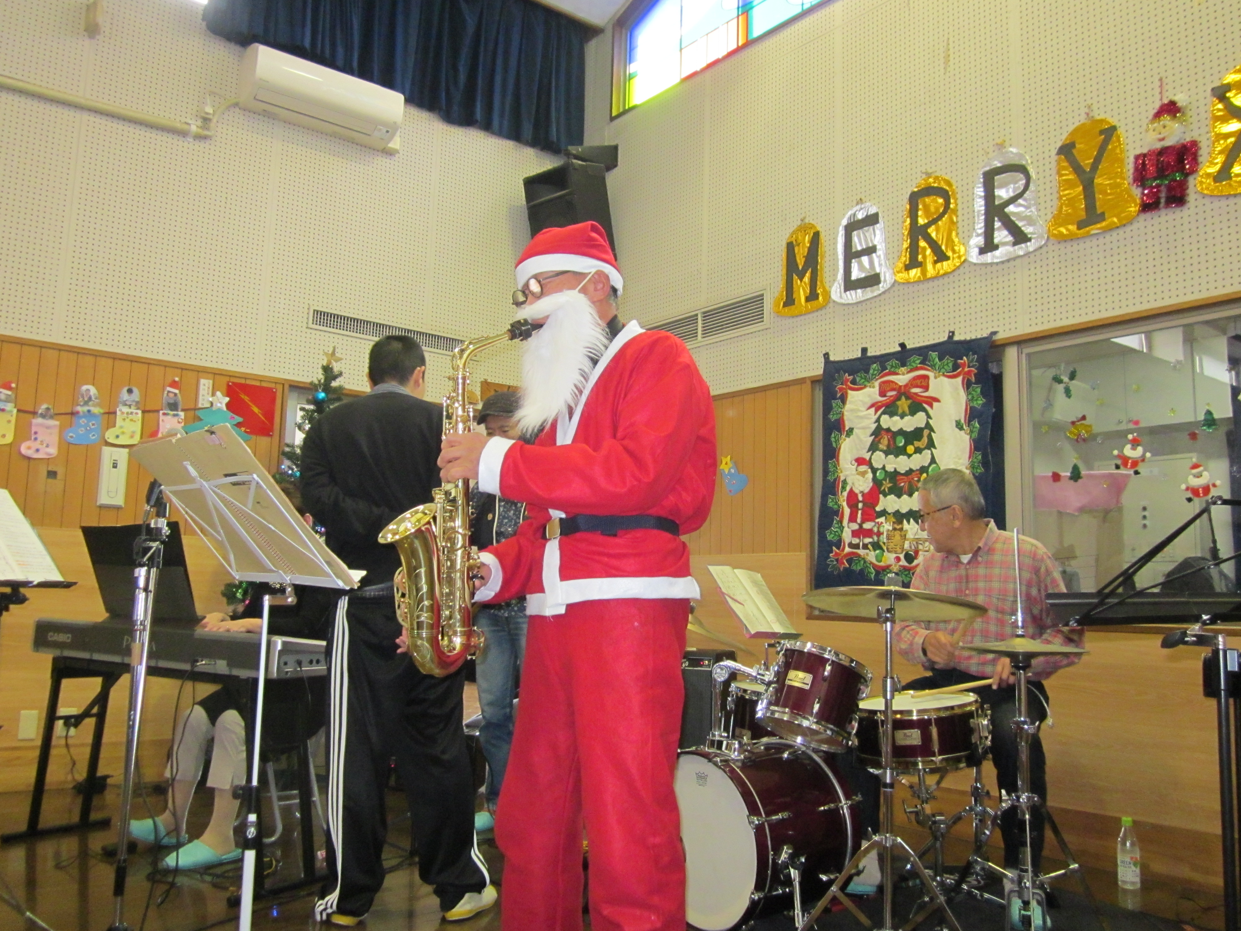 湘南ゆうき村にもクリスマスがやってきました。通所利用者さんには年に1度のお楽しみの日です。プログラムは2部構成でお食事会とジャズ演奏会なっています。まずはお食事会、とっておきのメニューで、みなさんを「お・も・て・な・し の心」(12月ゆうき村月間目標)でお迎えいたしました。