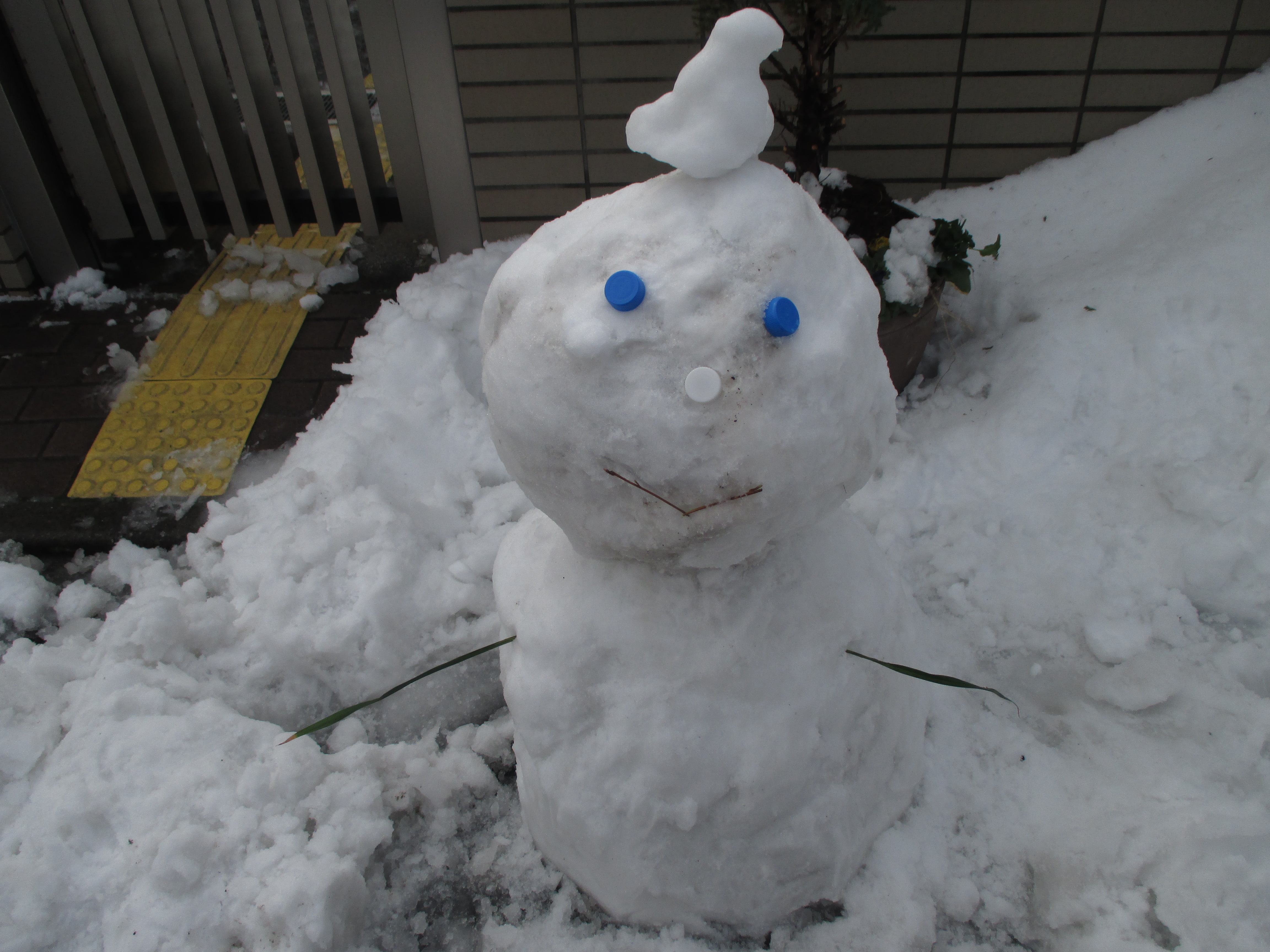 皆の人柄が出て、愛嬌のある雪だるまが完成しました♪門の前で皆さんを出迎えています。