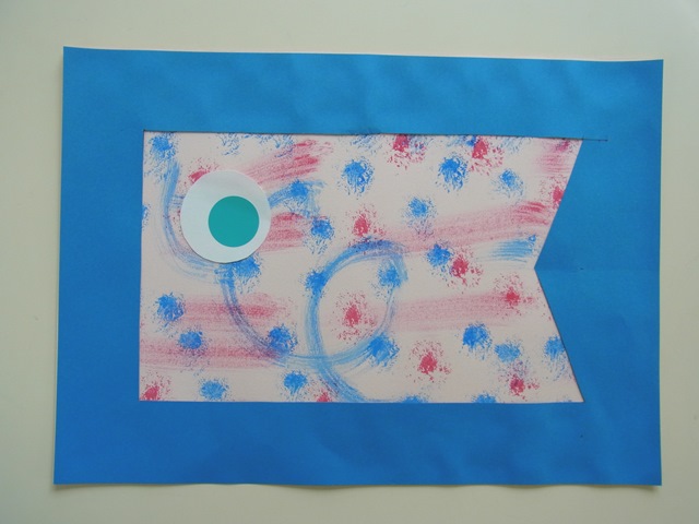 「見て~出来たよ」と言いながら、絵の具をペタペタ。