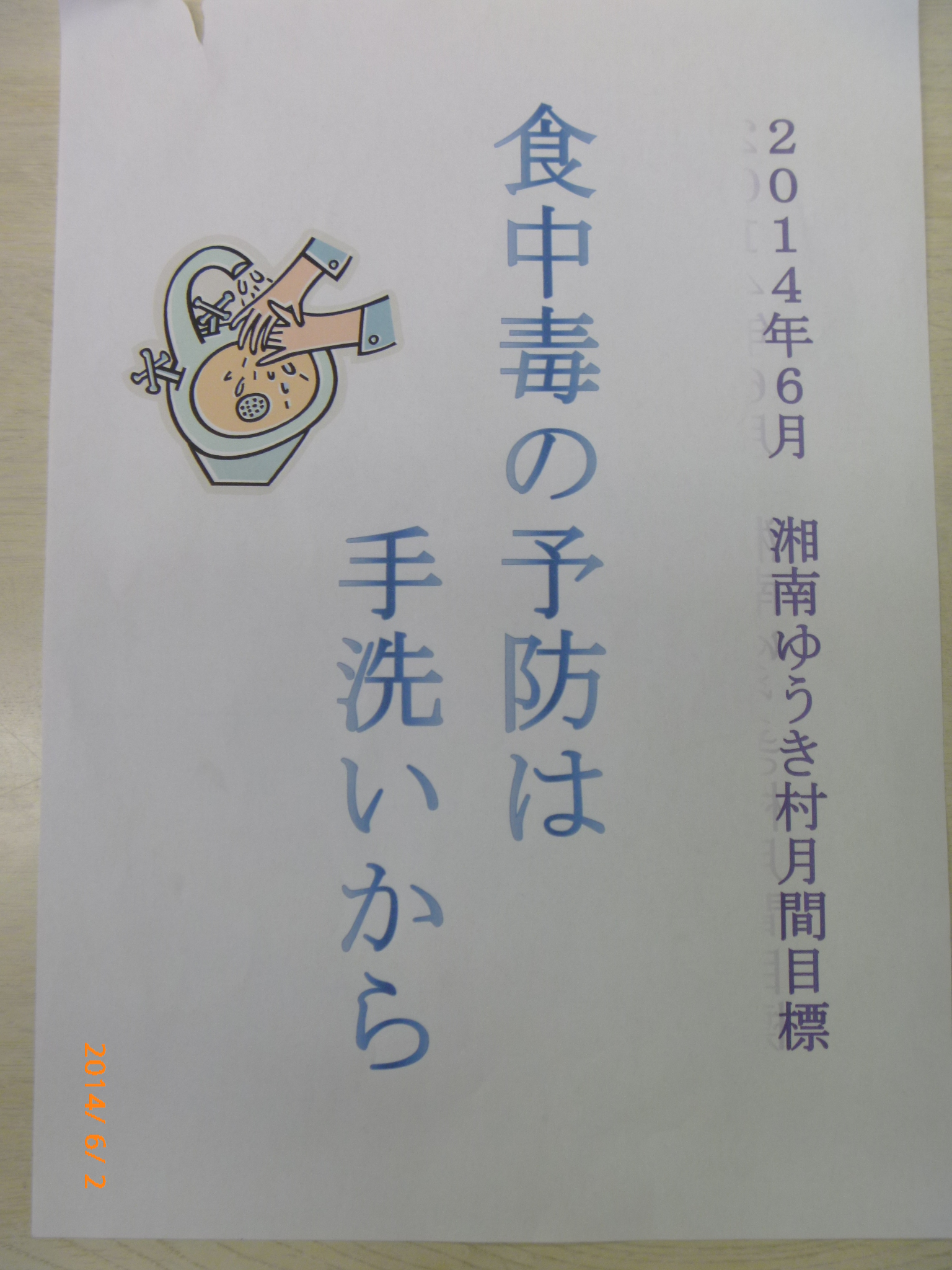 全体の目標を考えており朝の打ち合わせで読み合わせをしています。毎月1日に目標が変更されるのでこれから毎月シリーズで紹介させていただきます。何か気になる目標がありましたら自分ルールでも採用して実行してみてください。ちなみに今月はデイサービス部署が担当です。6月で熱くなってきた月なので食中毒を起こしやすい季節です。改めて手洗が大切になってくる時期とありまして保健所みたいな目標ですがこのような目標になったそうです。