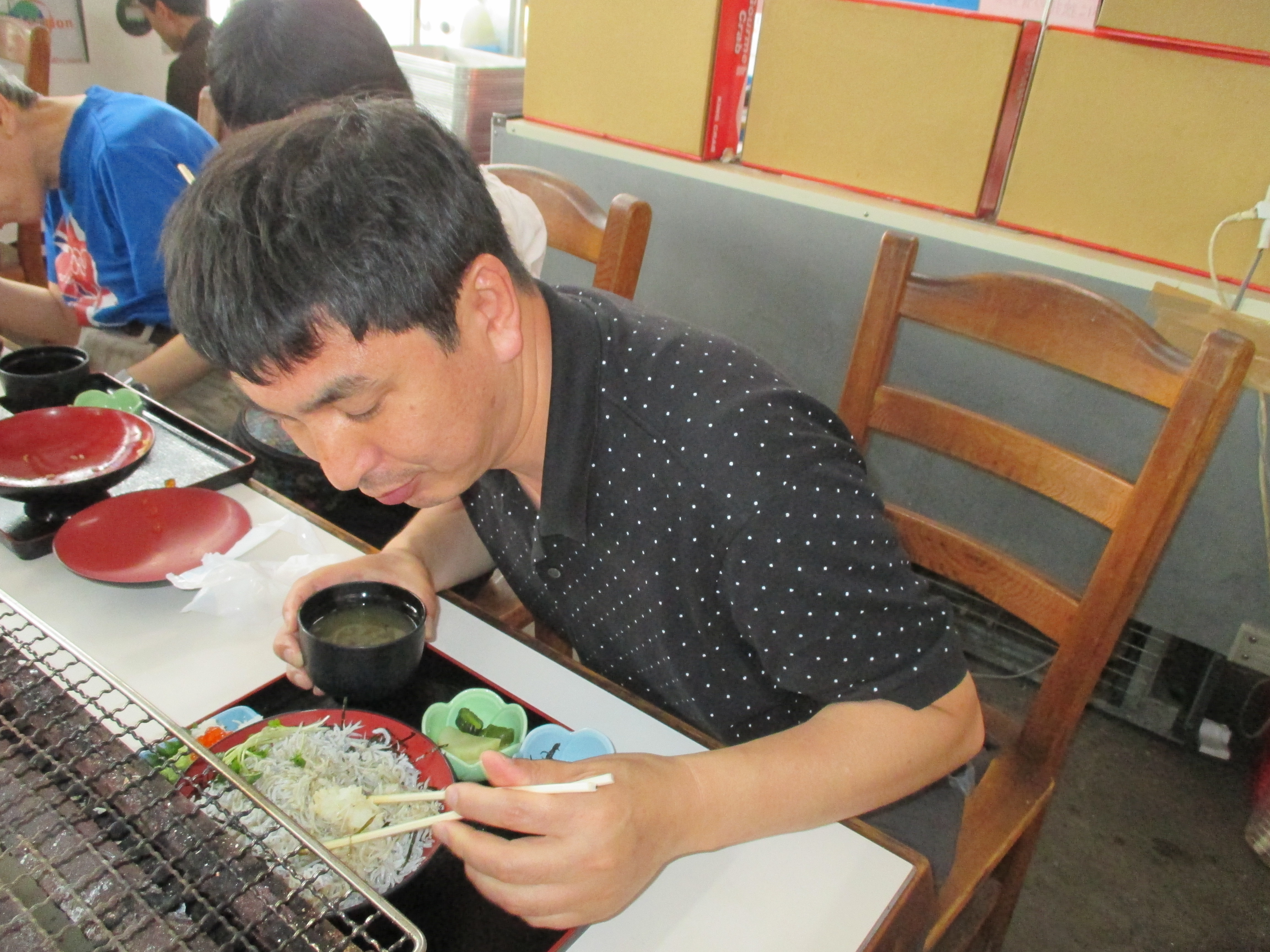 一日目、アクアラインを通って千葉へ向かい、昼食は港の側にある海鮮のお店で頂きました。美味しいようで皆さん集中して召し上がっています♪