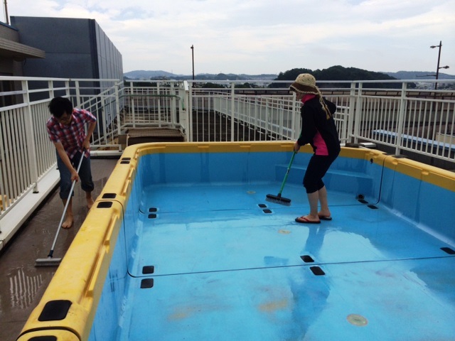*去年のプール掃除↓ スタッフの服装に注目(笑)