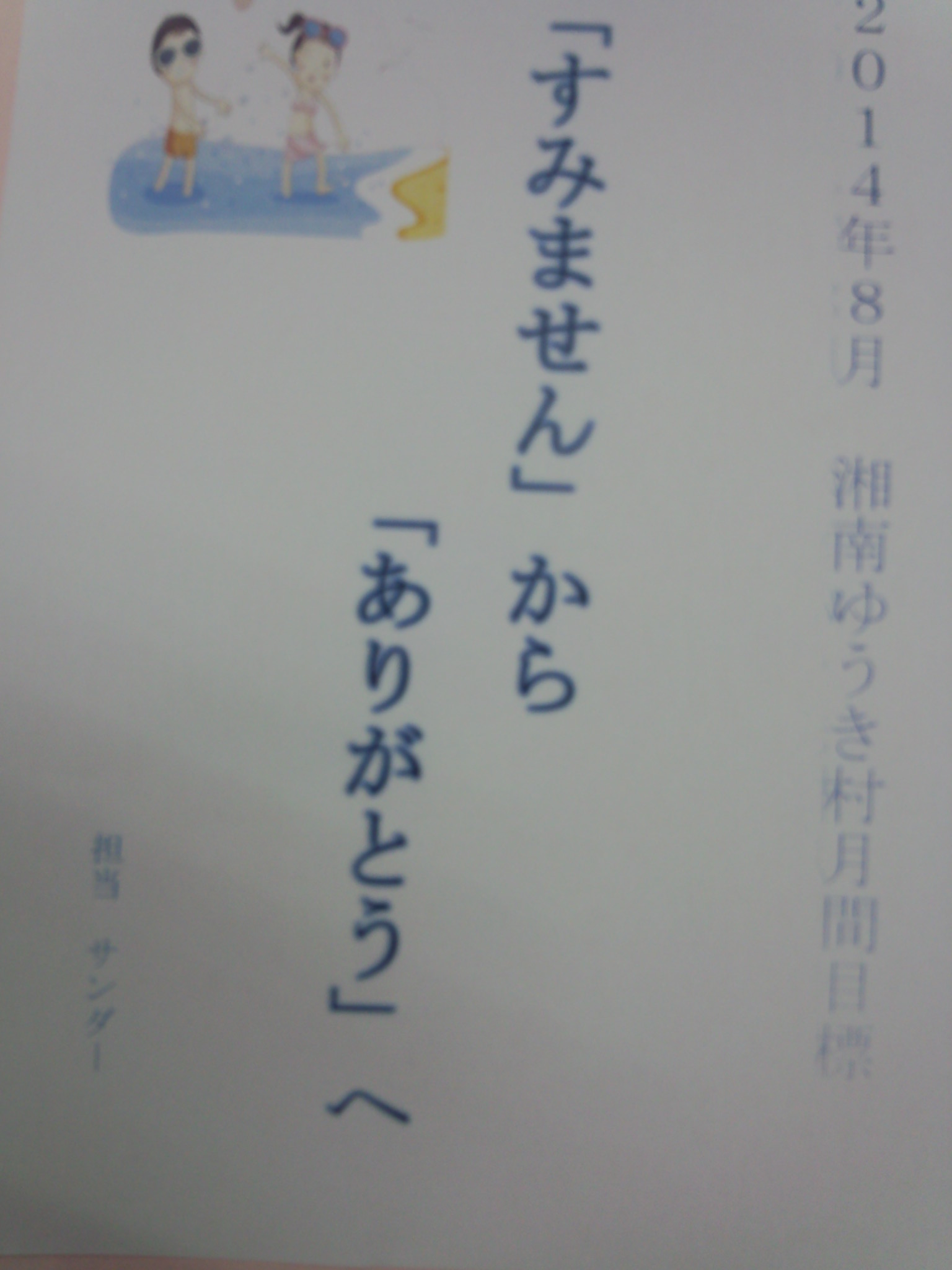 「すみません」と謝る場面や場合もありますが、何かをするときにいつでも「すみません」と言うより、何かをしたとき、された時に「ありがとう!」といった方が、お互い気持ちが良いし明るくなるので、この素敵な言葉『ありがとう!』をみんなでたくさん使っていきましょう!!と言う事で、この目標です。
