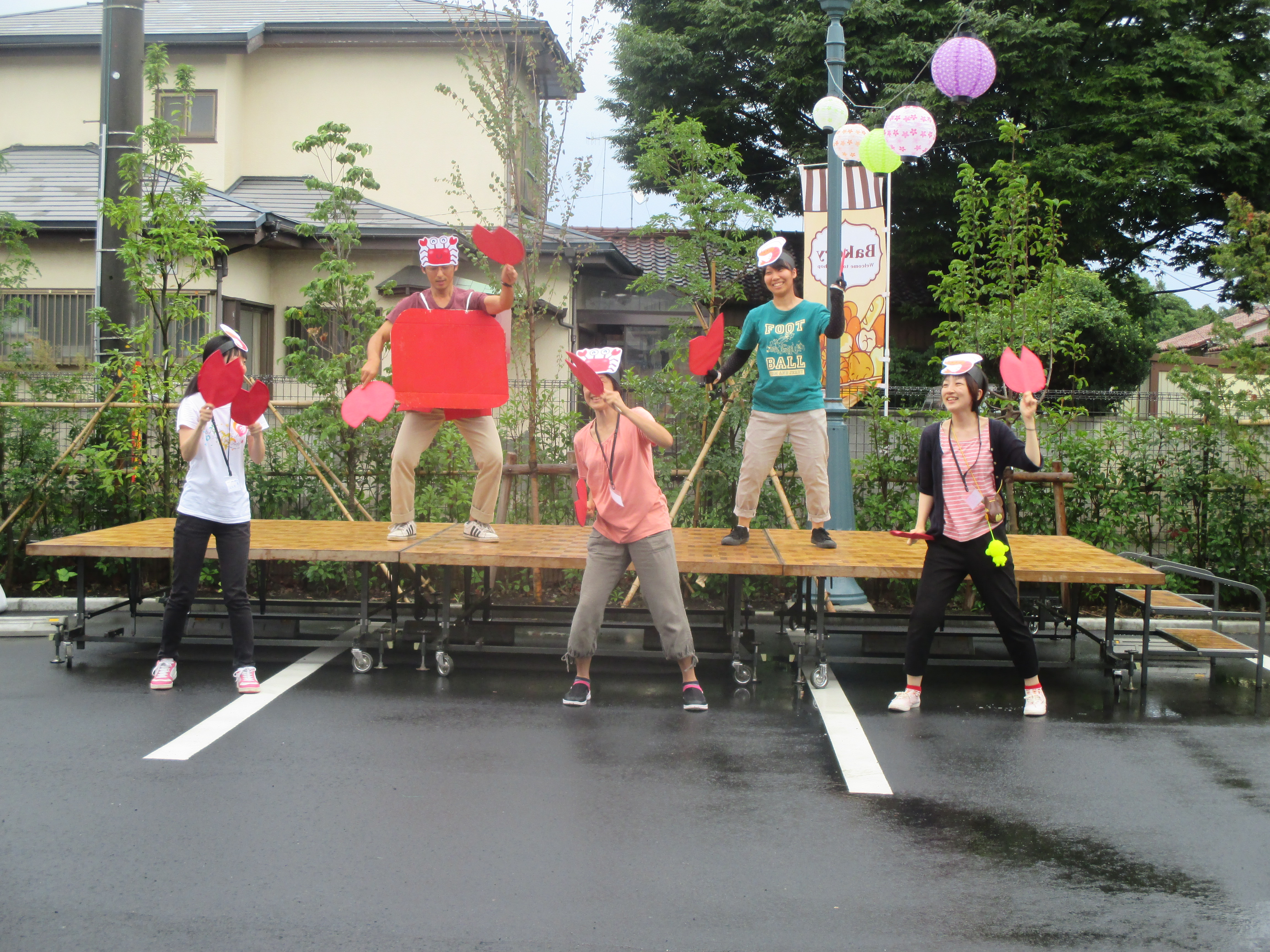 また、多くのご協力があり、焼きそばやかき氷、フランクフルトなど祭りの定番品から、カレーライスや今川焼きに加え、だいちの森のパンと豊富なラインナップが並びお客様もどれから食べるか迷ってしまった事と思います。さらに、中庭ではヨーヨー釣りやペットボトルボーリング、外のステージでは子供も大人もステージで混ざり合いながらのエビカニビクスダンスやサンサン体操を踊って盛り上がり、いつもは見せない様な利用者さんの笑顔を見ることができました。今回の夏祭りに利用者の方々ご家族や近隣の方々と多くの方に来てスタッフ一同嬉しく思っています。ありがとうございました。