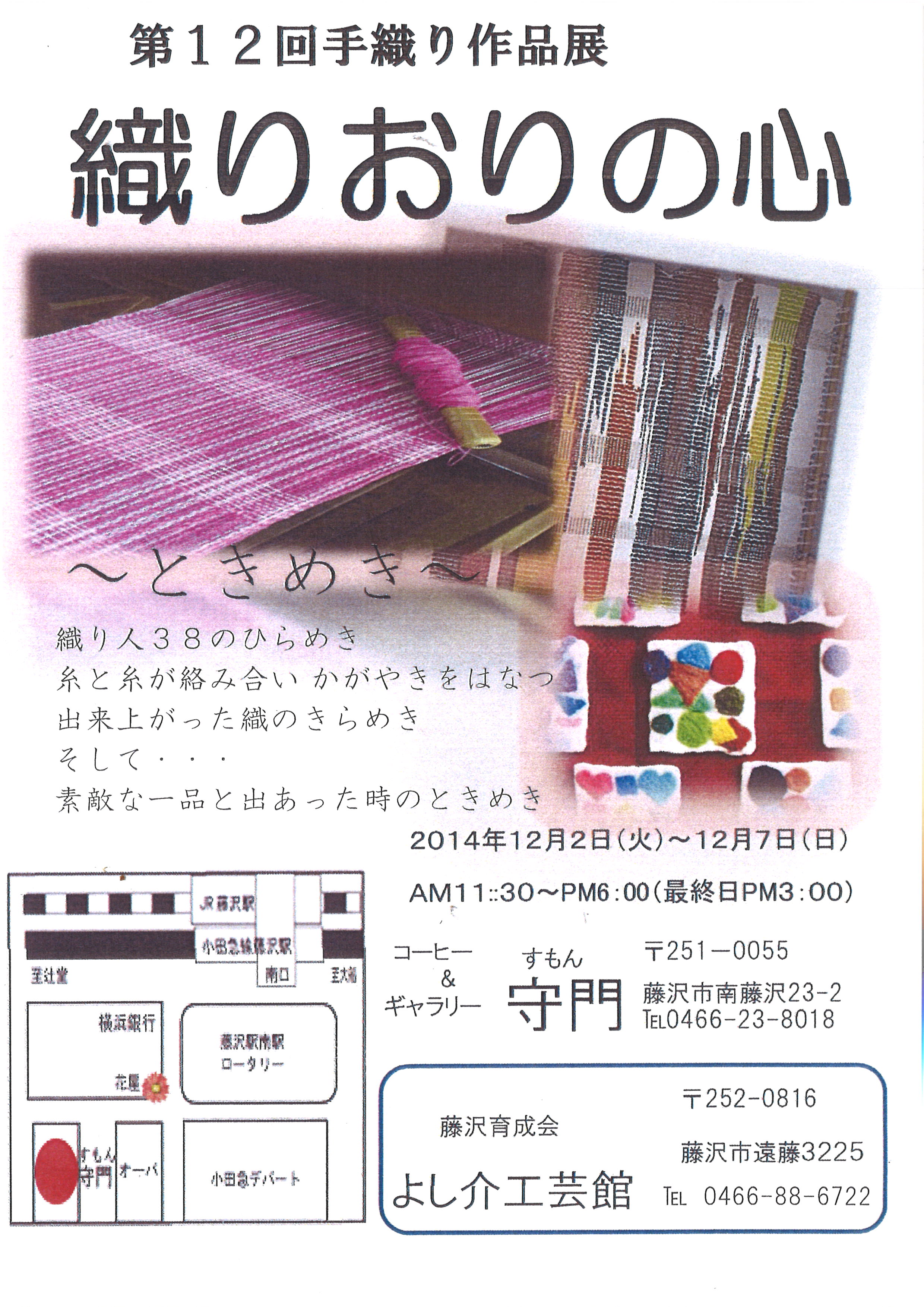本日は機織りの作品展「織りおりの心」のご紹介です。