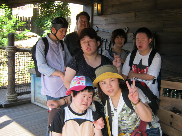 当日は3つのグループに分かれて園内を回りました。グループによって、タワーオブテラーやインディージョーンズなどのアトラクションに乗ったり、ゆったりと船に乗ったり、ハンバーガーやスパゲッティなどのご飯を食べたりと、それぞれのグループで楽しみました。アトラクションに乗った方の中には、びっくりして固まってしまった方もいらっしゃいました。船に乗った時には、揺れる船を怖がっていた方も気持ち良い風に当たってすぐに笑顔になっていました。