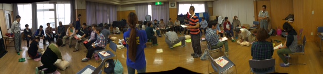 今回の講習の為に村岡消防署の救急救命士の方やボランティアの方が十数名来てくださいました。本当にありがとうございました。