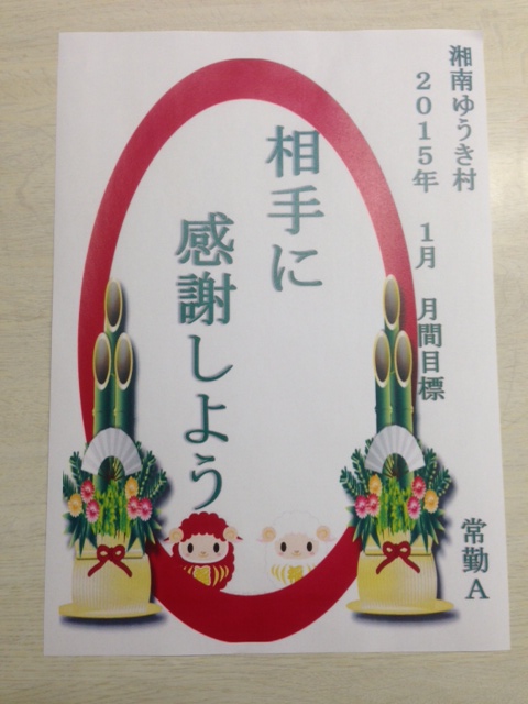 そしてこうして皆様に支えられてきた感謝の気持を込めて2015年度初めの目標は「相手に感謝しよう。」になりました。あらためて、皆様今年も宜しくお願い致します。