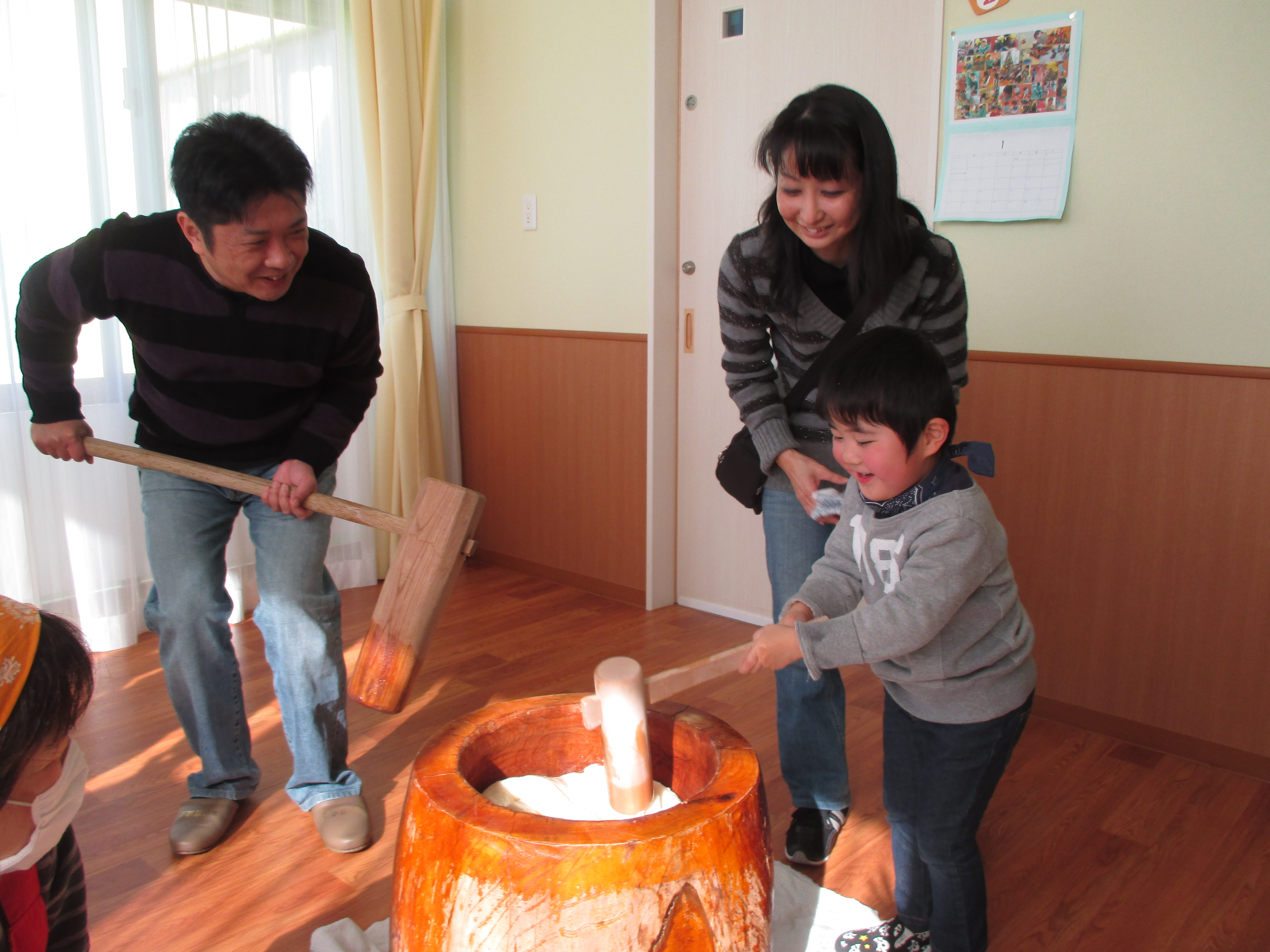 揚げ、餅つき、お餅を食べること、いろいろと「人生初」があったようです。そんな貴重な体験を一緒にできて、ぷれっじにとってよい1日となりました。