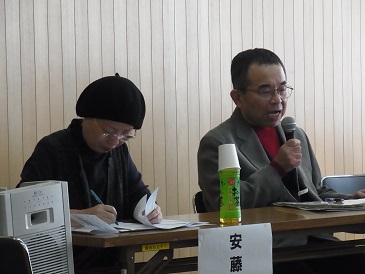 講師に、藤沢市手をつなぐ育成会会長 安藤清美さんと、(社福)創 プロップ利用者 冨田祐さんを招いてシンポジウム形式の研修会でした。