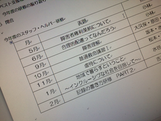 今年度、9月以降の研修は、直接支援をしている常勤職員が、年間計画に基づき、研修の企画運営をしました。