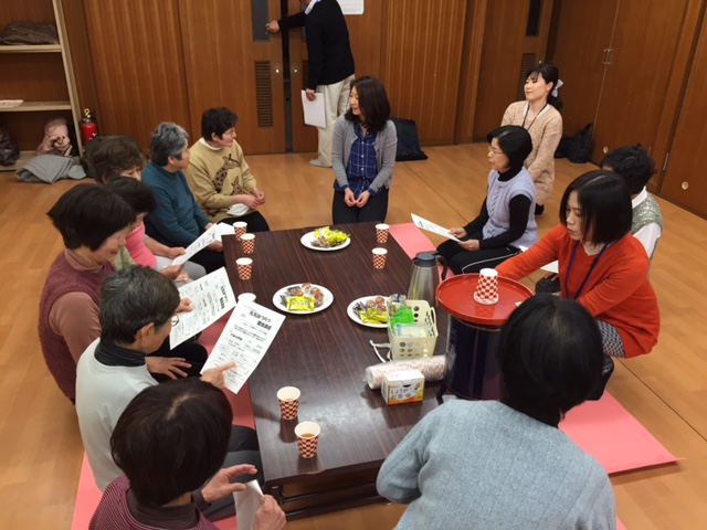 保健師による健康情報や、健康茶の試飲、お酢の飲み比べ、ご近所の開花情報などなど、話題はさまざま