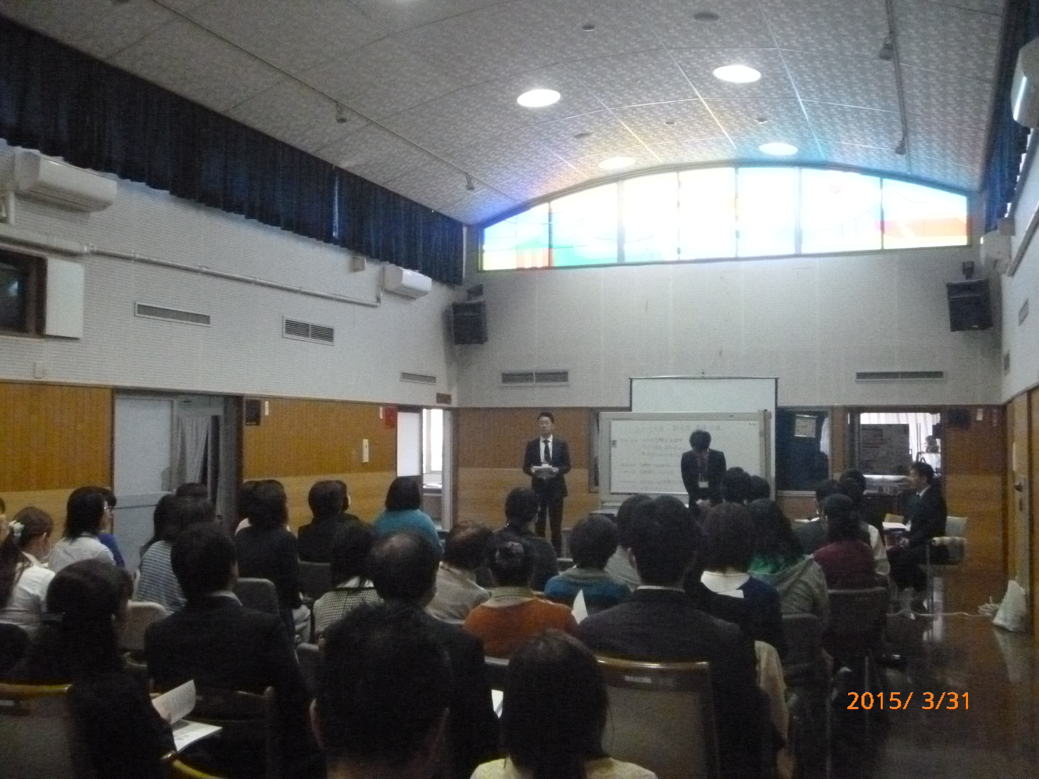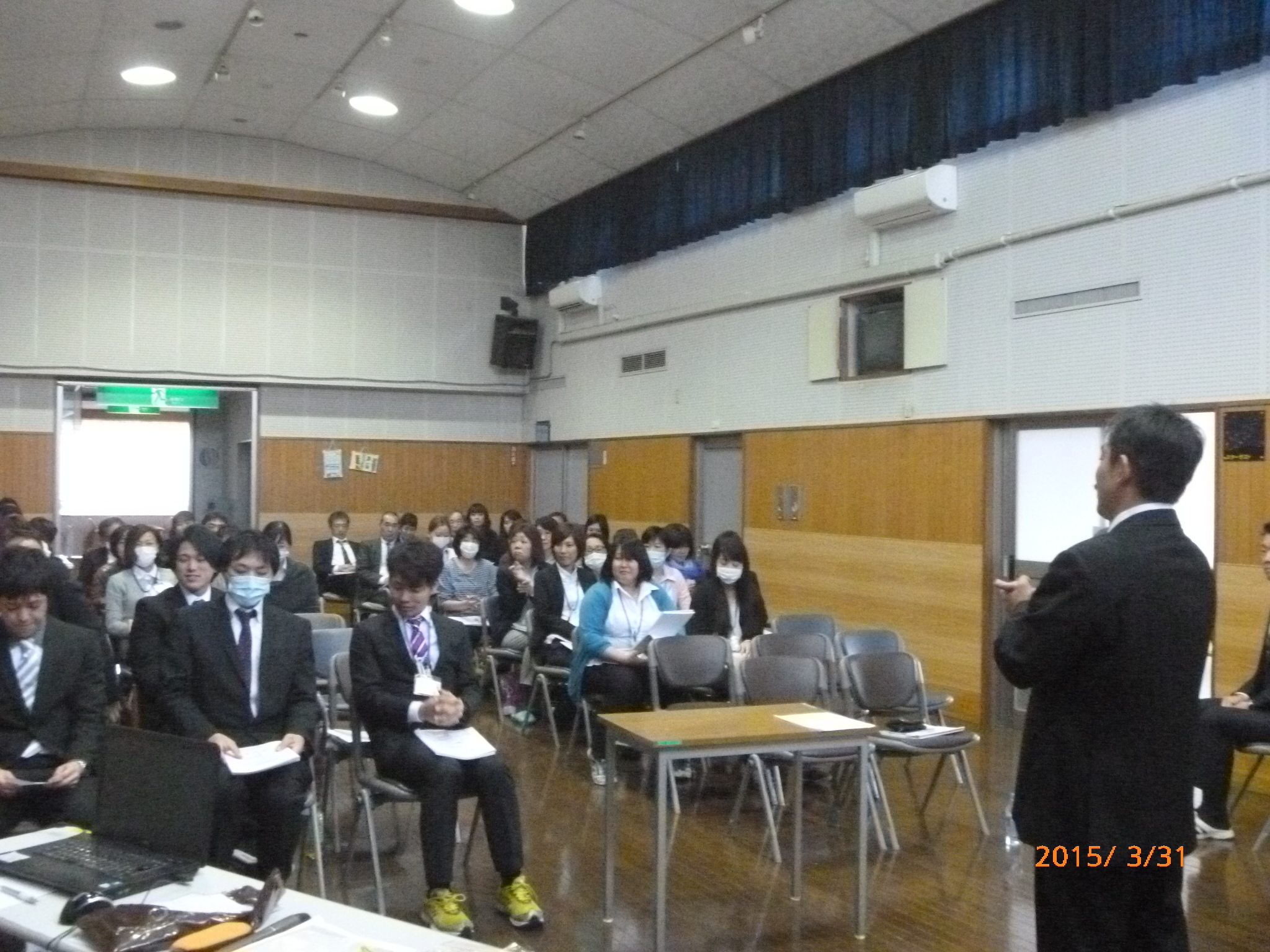 この日一日は普段と違う純正装で、事業計画の説明と新年度を迎えるにあたっての心構えなど施設長・課長より話があります。今年は20周年なので、20年を スライドで振り返り、改めて各部署がどのような仕事、サービスを行っているのかを、サービス管理責任者・サービス提供責任者が発表しました。違う部署の様 子は、知っているようで知らない事もあり、新鮮に感じているスタッフも多かったです。