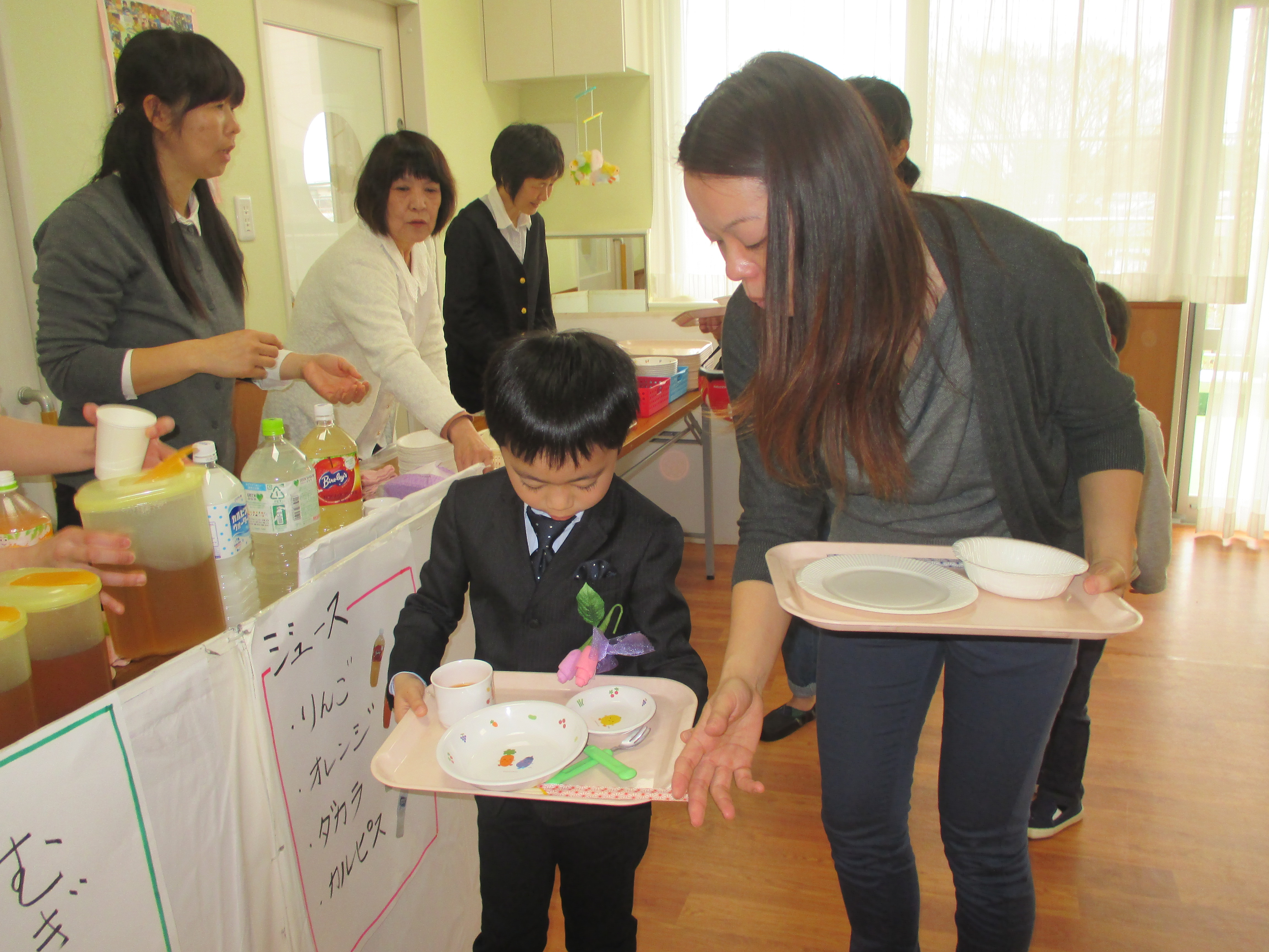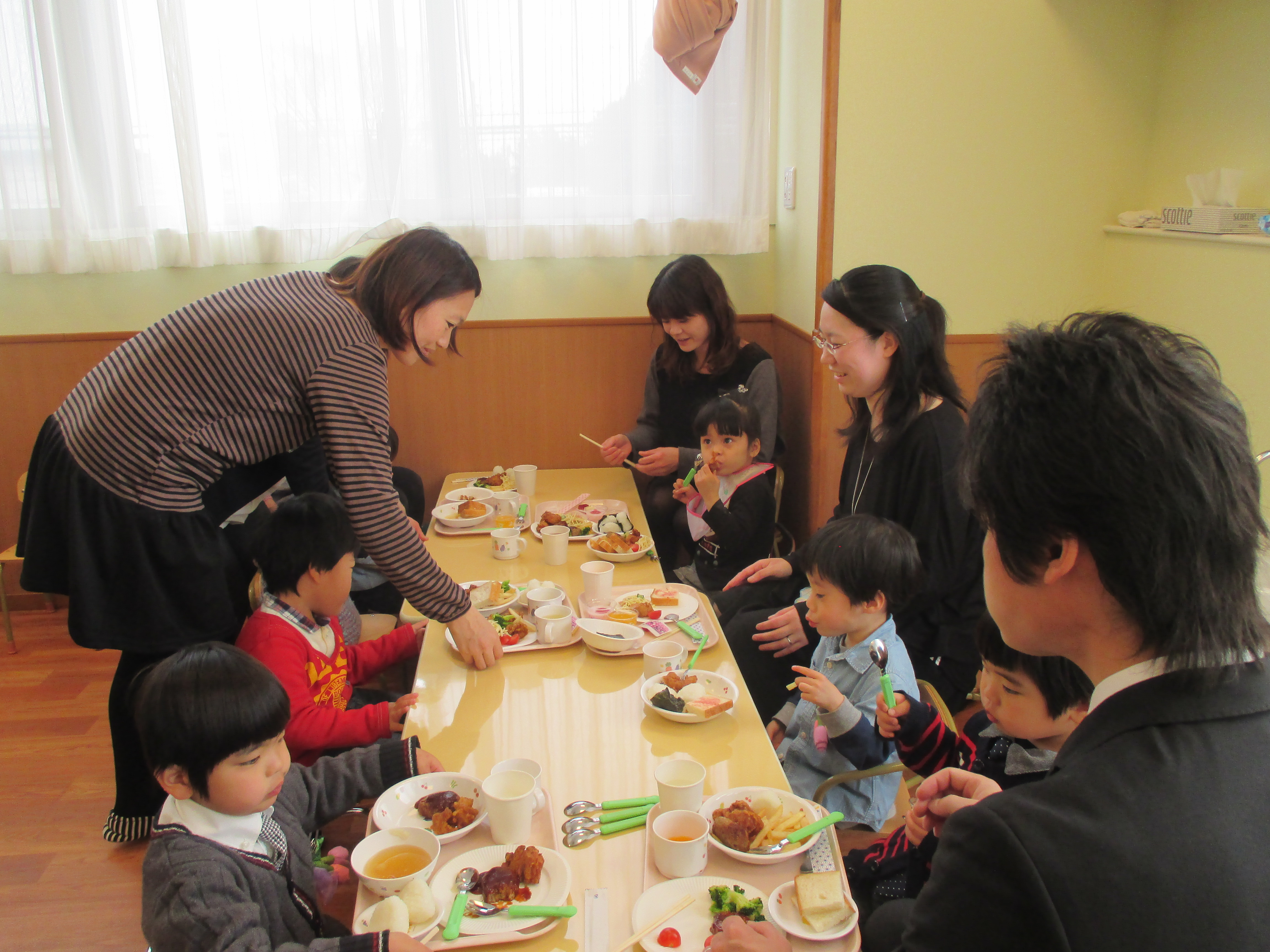 式の後は、在園児とその保護者も加わり、みんなで楽しくご飯を食べました。