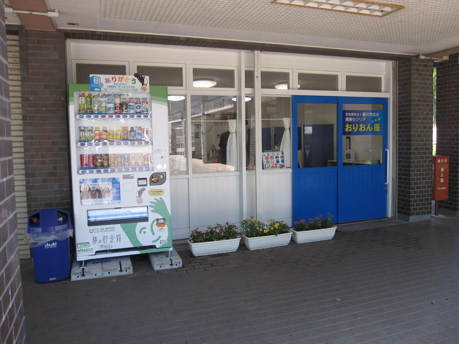 湘南セシリアでも、この日本財団の取り組みに賛同して、2015年6月に2台の「夢の貯金箱」を設置致しました。設置場所は、湘南セシリア厨房側門付近に1台、善行団地で活動している地域作業室「おりおん座」に1台です。