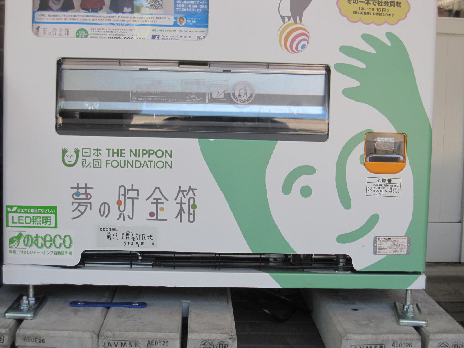 「夢の貯金箱」は、「社会貢献自動販売機」として日本財団が2007年度より日本に寄付文化を醸成することをミッションの一つに掲げてスタートした取り組みです。