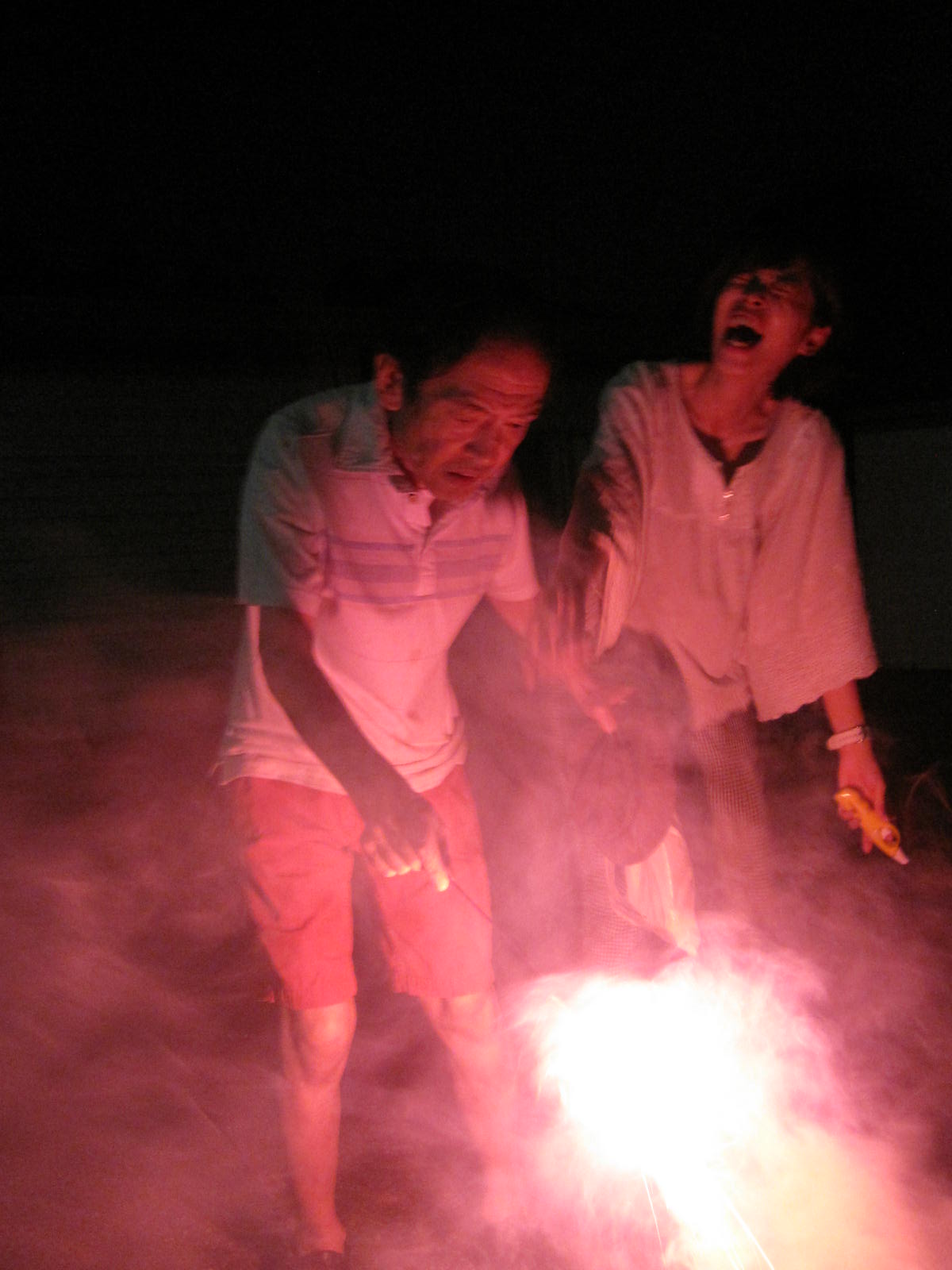 外に椅子を並べて、「花火しましょう」とお誘いすると皆さん目がキラキラに!!