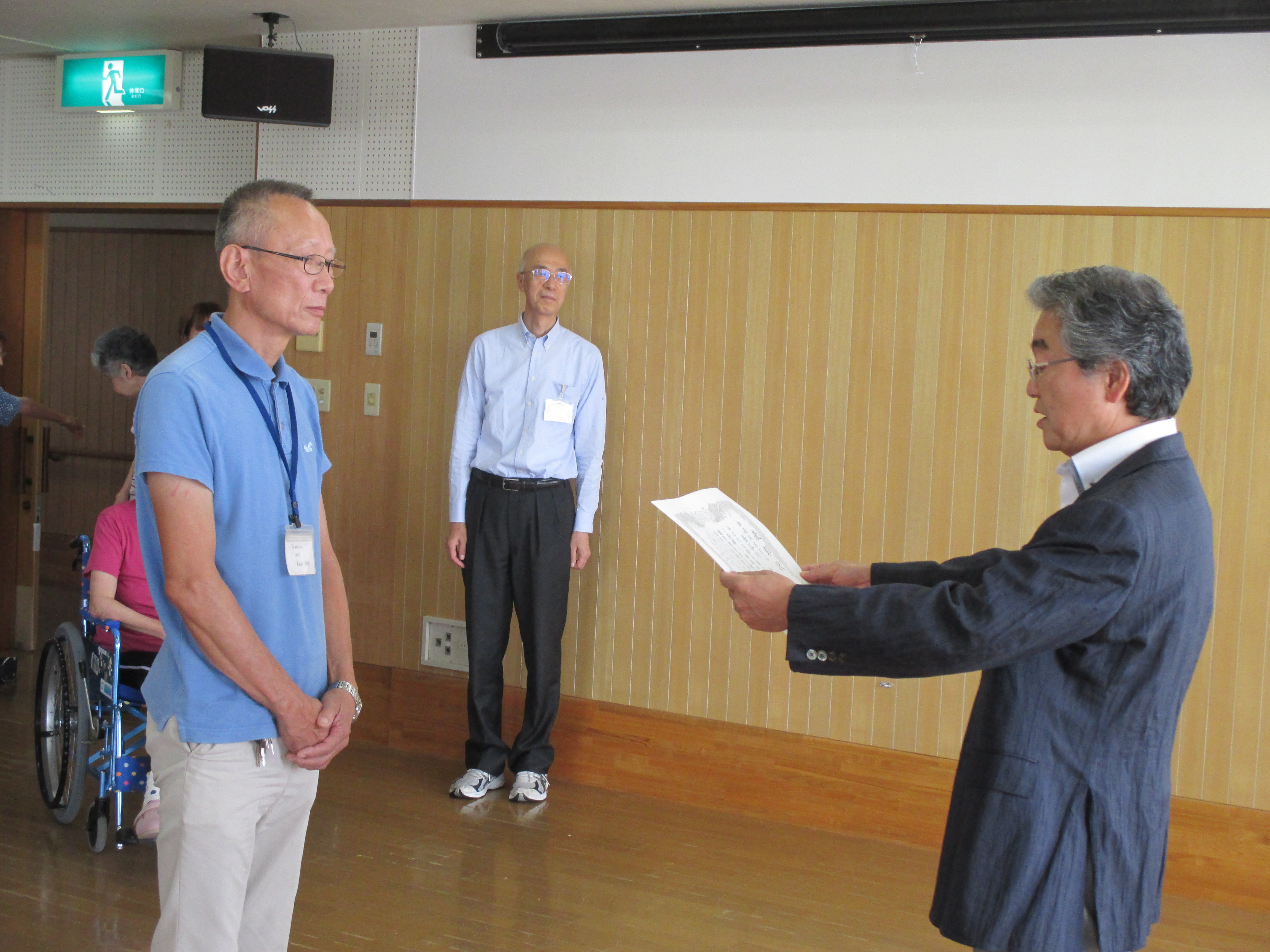 表彰は参加できる利用者や職員も入って頂きました。ご本人は理事長からの表彰にとてもご謙遜をされていましたが皆さんに感謝され今後もより一層、頑張ってくださる力強く言われています。