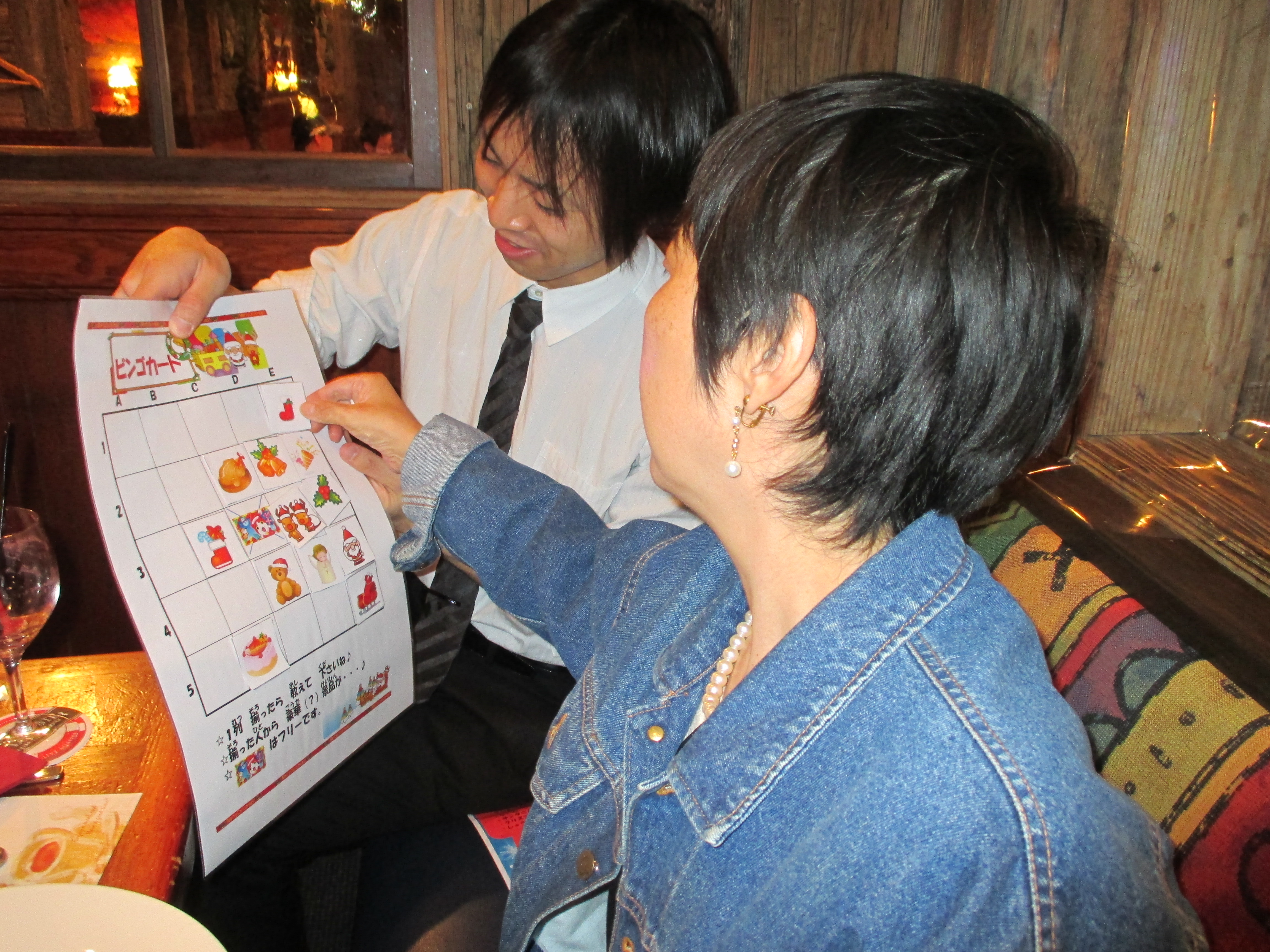 美味しい料理を食べながら、ビンゴゲームをしました!