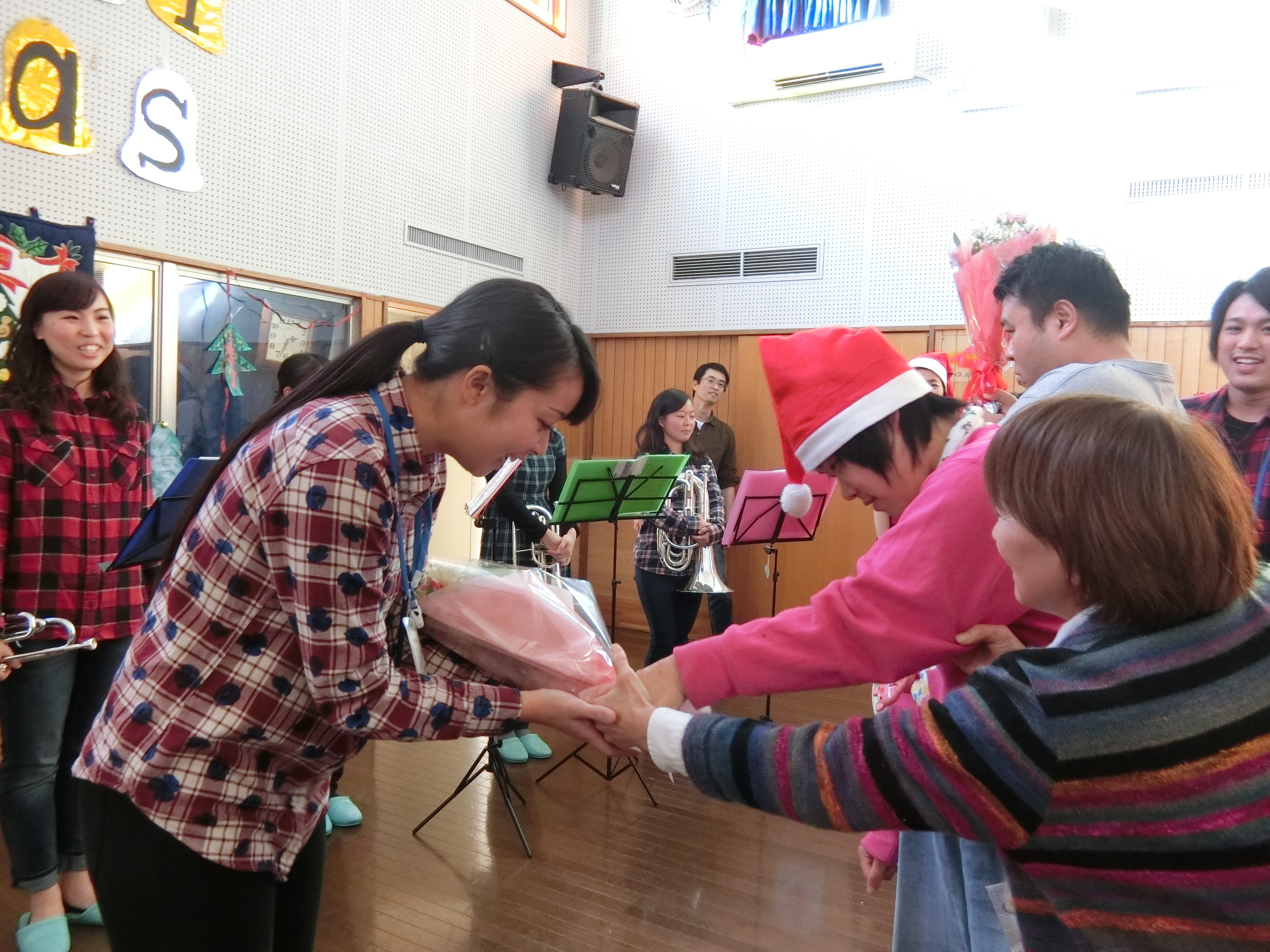 素晴らしい演奏に、聴き入れる方、一緒に歌われる方、踊る方とみなさん楽しまれていました。感謝の気持ちを込めて花束贈呈です。