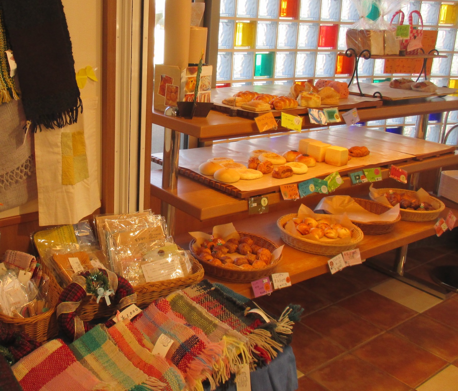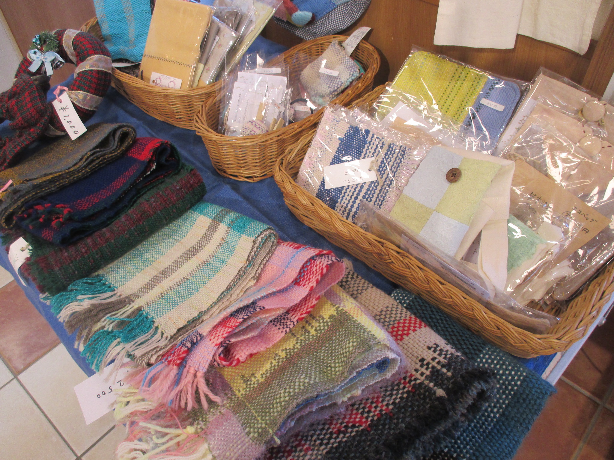 ★『あかね』の作業室からは草木染めや機織りの作品として、マフラーやエコバックの他雑貨を販売しました。