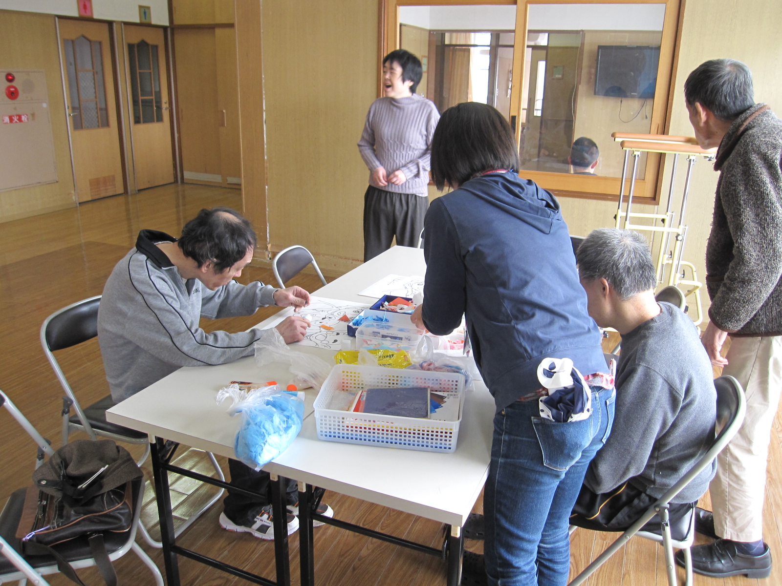 動物が苦手な利用者の方へは、貼り絵を楽しめるように集会室で実施しました。
