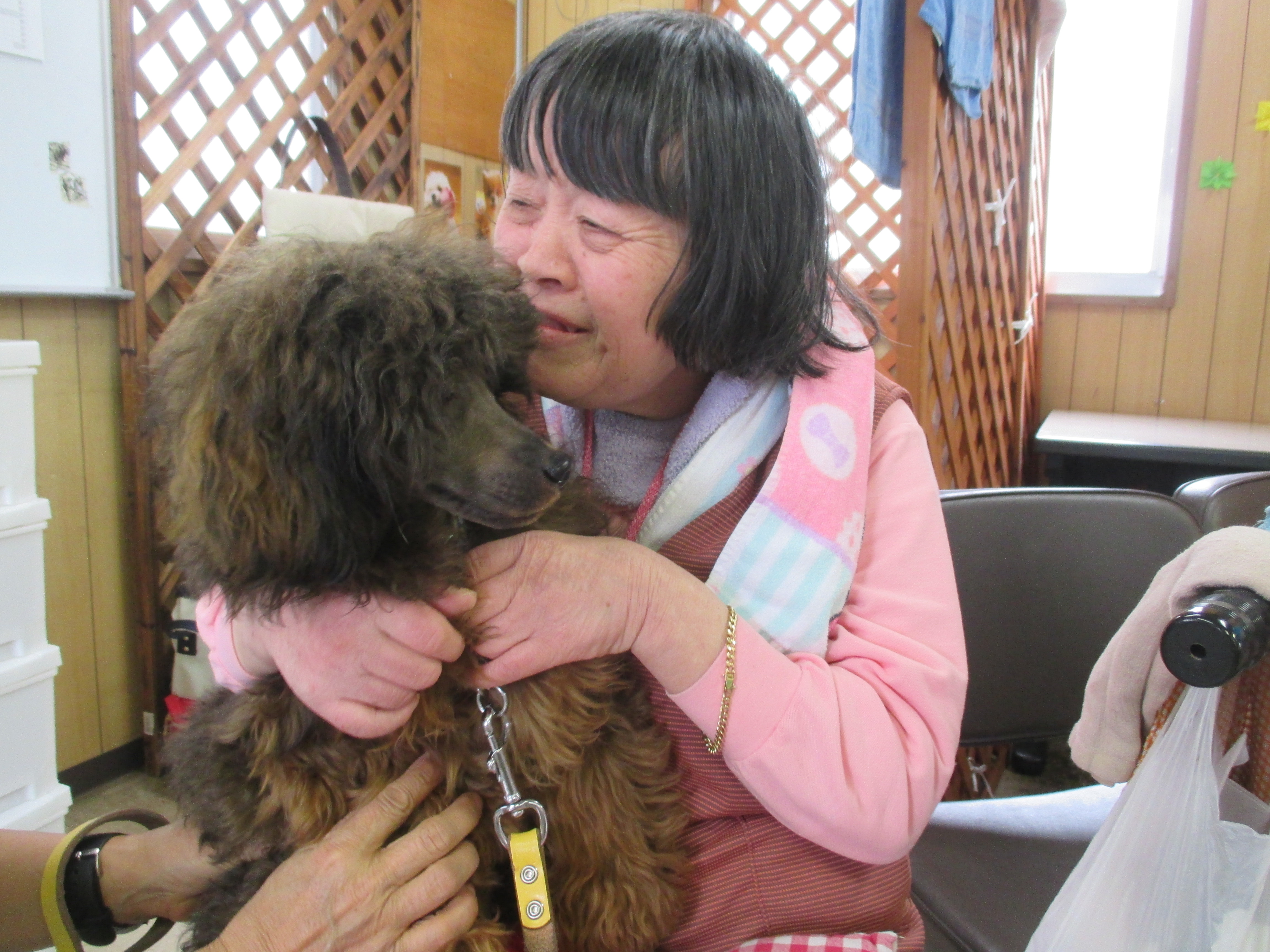 利用者の中には、以前ご自宅で犬を飼っていた方や動物好きな方は、初めから積極的に触れ合っていました。